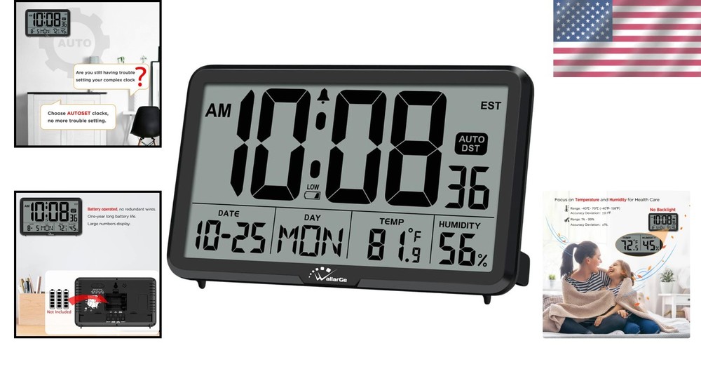 Auto Set Digital Wall Clock with Temperature, Humidity & Large Display - Black ‹ › ‹ › ‹ › ‹ › ‹ › ‹ › ‹ › ‹ › ‹ › Auto Set Digital Wall Clock Experience Precision and Style Elevate your living space with our Auto Set Digital Wall Clock, a perfect blend of functionality and modern design. With its sleek black finish and large display, this clock is not only a practical timekeeper but also an elegant addition to your home decor. Key Features: High Precision Detection: Equipped with Swiss SHTC3 sensors, you can effortlessly monitor indoor temperature and humidity, ensuring your environment remains comfortable -round. Effortless Setup: Just insert three AA batteries (not included), and watch the clock auto-set to the correct time. Simply select your time zone for immediate accuracy. Memory Backup: In the event of a power outage, the built-in memory battery ensures your clock retains the correct time and date, giving you peace of mind. Large Display: The easy-to-read numbers are designed for simplicity, perfect for wall or desk usage. A convenient 8-minute snooze feature makes it ideal for your bedside. Multifunctional: Combines a calendar, timer, and alarm clock, ensuring you never miss an important meeting or appointment. Elegant Design: Choose between 12 or 24-hour display formats and enjoy eight selectable time zones. Temperature readings can be displayed in Celsius or Fahrenheit for your comfort. Perfect for living rooms, bathrooms, offices, or kitchens, this clock complements any space. Why Choose Our Auto Set Digital Wall Clock? Invest in a timepiece that combines accuracy with elegance. Our Auto Set Digital Wall Clock not only helps you stay punctual but also enhances your home or office decor. With its simple setup, high precision sensors, and multifunctionality, it ensures you have everything you need in one sleek design. Don't let time pass you by—order your Auto Set Digital Wall Clock today and embrace a new level of accuracy and style. Shipping Free & Fast Shipping - We offer free shipping to most of the USA with a normal delivery time of 3-7 days. However, due to the current situation, additional delivery time (up to 3 weeks) may be required for some items. Alternative Carriers - We may use alternative carriers (e.g. USPS, FedEx, UPS, etc.) to ensure your package arrives safely and on time. Due to the use of multiple carriers, we are unable to provide a tracking number automatically. Handling Time - Orders are processed and shipped within 1-2 business days of receiving cleared payment. Shipping Restrictions - Shipping to Alaska, Hawaii, Puerto Rico, Guam, and other US territories may incur shipping charges or delivery restrictions. Please contact us before ordering, or your order can be refunded/cancelled. State Restrictions - There may be restrictions based on your state of purchase. For example, certain items may not be shipped to California due to state regulations. Contact for Tracking Updates - If you require tracking updates or have any concerns about the delivery of your order, please feel free to contact us, and we will be happy to assist you. Return 30-Day Hassle-Free Returns - We want you to be completely satisfied with your purchase. If you are not, you can return the item within 30 days of receiving it for a full refund or exchange. Easy Return Process - To start a return, simply contact us and we will provide you with a prepaid return shipping label and detailed instructions. Restocking Fee - There are no restocking fees for returns. However, the buyer is responsible for return shipping costs if the return is not due to a seller's error. Refund Processing Time - Refunds will be processed within 5 business days of receiving the returned item in its condition. Payment We accept all major credit cards, PayPal, and Apple Pay for your convenience. Your payment information is secure and encrypted to ensure a safe and seamless transaction. Please complete your payment within 3 days of purchase to avoid any delays in shipping. Feedback Your feedback is extremely important to us. We strive to provide the best products and customer service possible. If you are satisfied with your purchase, please take a moment to leave us a positive review. If you have any concerns or issues with your order, please contact us before leaving negative feedback. We are committed to resolving any problems and ensuring your satisfaction. Contact Us If you have any questions or concerns, please feel free to out to our customer support team. You can contact us through the eBay messaging system. We are available Monday to Friday, 9:00 am to 5:00 pm EST, and we will do our best to respond to your inquiry within 24 hours. Buy it now and enjoy a pleasant shopping experience! Unit Quantity: 1.05 lb Features: Alarm,Large Display,Temperature Display,Snooze,Daylight Saving,Calendar Display Theme: Plain Material: Plastic Room: Bathroom,Bedroom,Kitchen Department: Kids,Teens,Adults,Seniors,Elderly,Youth Type: Digital Wall Clock Style: Modern Power Source: Battery Powered Color: Black Movement: Automatic Display Type: Digital Frame Material: Plastic Shape: Rectangular Protection Plan: No Coverage Item Weight: 1 - 2 lb Unit Type: lb