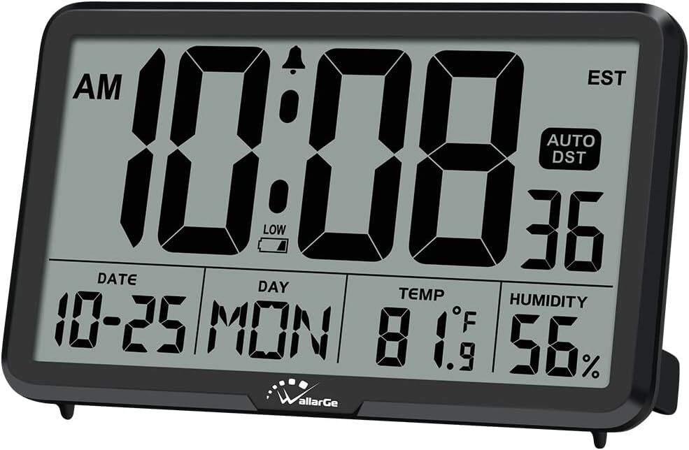 Auto Set Digital Wall Clock with Temperature Humidity Date Alarm Battery Operated Desk Clock