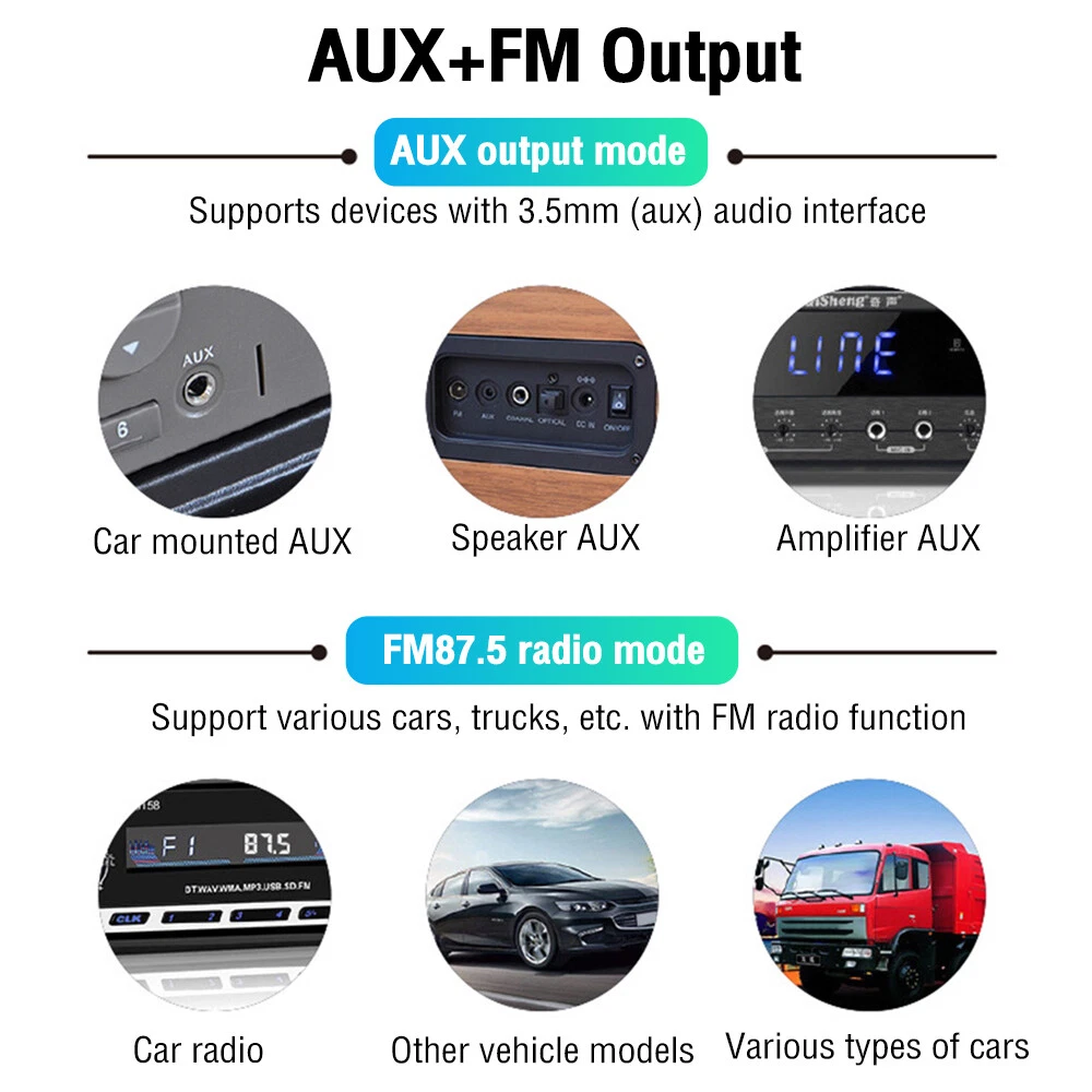 Features: 1. [Auto Memory Function] W3 has FM frequency auto memory function, every time you turn on the power, it will default to the last used FM frequency, saving you time. 2. [Faster and Longer Distance] Faster and longer working distance than BT5.0, maximum transmission rate up to 3 Mbps, transmission distance up to 33 feet/10 meters. (Note: Operating range may be affected by physical obstacles and wireless interference) 3. [Wide Compatibility] This 3.5mm car bluetooth USB adapter is compatible with devices with 3.5mm and USB A ports.RX mode can be used for car audio, home audio, audio music streaming sound system, amplifier, speakers, headphones. 4. [Mini USB Space Saving] Small and compact mini USB adapter allows your laptop or PC to stay connected without blocking or interfering with surrounding USB ports. 5. [2-in-1 Transceiver] With wireless transmitter and receiver function. Transmitter can connect wireless devices. Receive mode activates wired devices. Specification: Product Name: FM Bluetooth USB Transmitter Product Model: W3 Bluetooth version: V5.3 Operating voltage: 5V Effective probability: 10 meters Audio output: FM transmitter Standard frequency: 95.0MHZ Signal-to-noise ratio: ≥ 95db Answer the phone: support Automatic return: Support TF card: Support AUX: Support Power mode: USB power supply (5V) Package Contents: 1 * USB transmitter receiver 1 * User manual 1 * 50cm audio cable Attention: 1. Please allow 1cm measurement deviation due to manual measurement! 2. Due to different monitors and lighting effects, the actual color of the item may be slightly different from the color shown in the picture. Thank you very much! On Aug 27, 2024 at 04:32:38 PDT, seller added the following information: