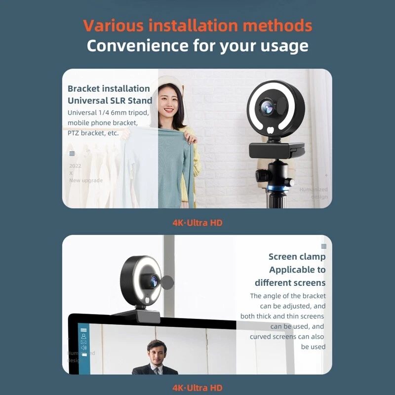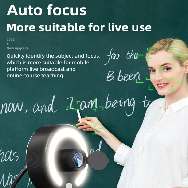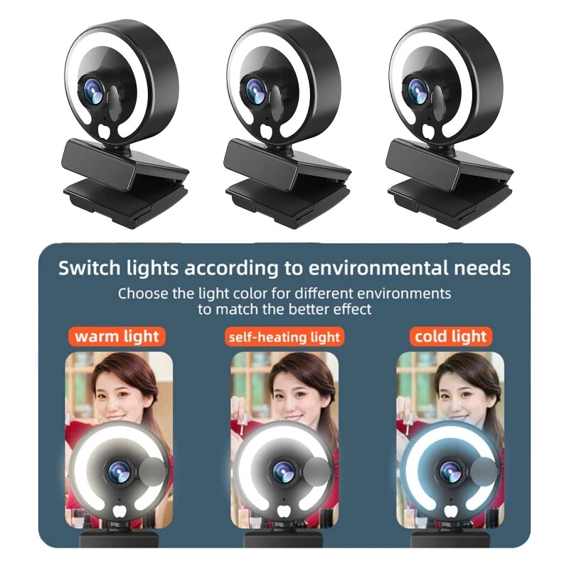 Features: brand new and high quality 1080p clear webcam,It is the best choice for live video, conferences,online teaching and so on. Intergrated ring light offers 3 different lightness for choice. You can easily get suitable brightness for touch control in dark enviroment and without the need to go into software settings. Multifunctional base, can be placed on the desktop, fixed above the screen, place on a tripod. for multiple operating systems, and can be used with almost all video meeting software.. This webcam features CMOS with up to 1080p resolution at 45FPS. With autofocus function and amazing able to ensure your videos are for always for sharp and Works with USB no additional required. Ready to use in or less with any compatible device. Specifications: Lens: High Lens Type:CMOS pixel: 10 million Frame Rate: 45FPS Type: Plug and for play Type: USB3.0 View 360° Rotate Optional Type: 4K / 2K / 1K Microphone: Built-in microphone Material:ABS Cable Length: approx1.5 meters/59in Support Equipment: Support mainstream computers such as for XP, Win7, Win8, Win10, MacOS, Linux and other operating systems Package Includes: 1x 1080P Auto for Focus Webcam note: Due to the problems of lighting effects and shooting angles, there will tolerances in the product, please understand. Please allow 0-1cm error due to the manual measurment.