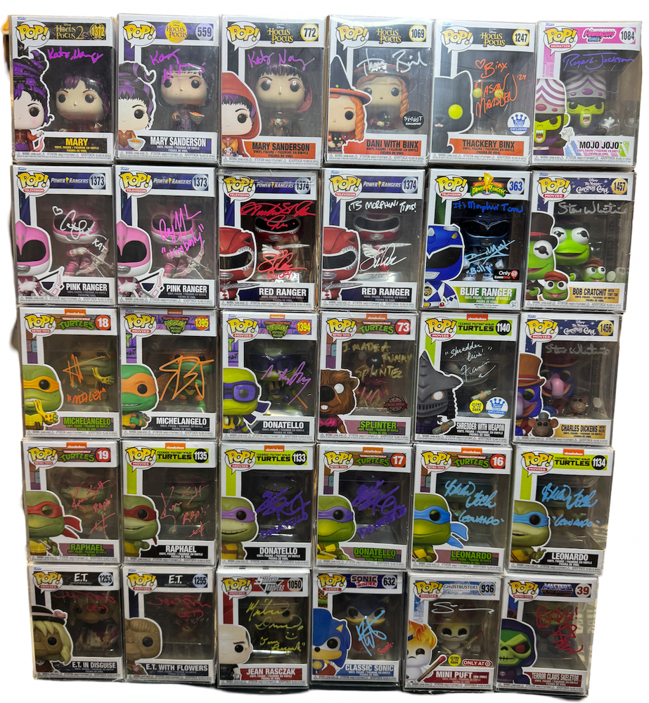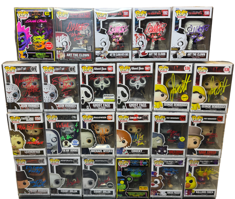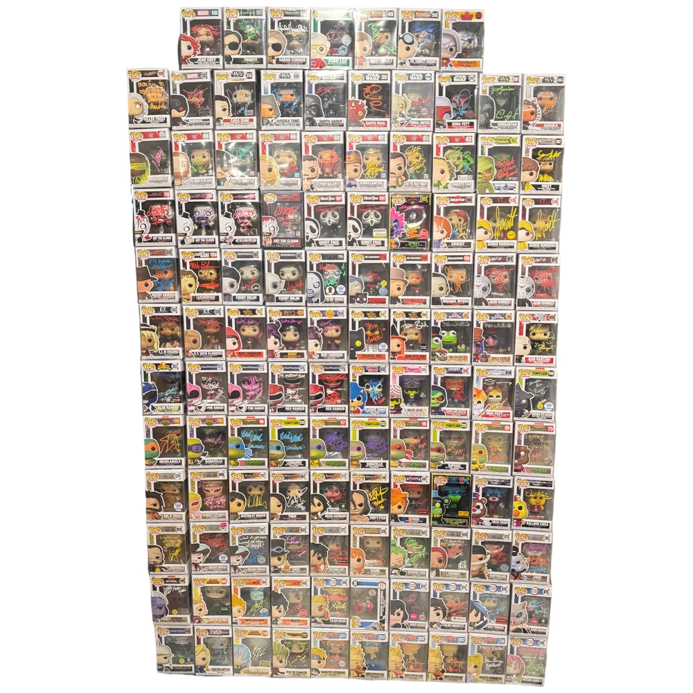 Autograph Funko Pop Mystery Box (Autographed / Signed) 2024 Edition Autograph Funko Pop Mystery Box (Autographed / Signed) 2024 Edition You will receive one of the autographed pops in the picture at random with 117 amazing possibilities. Most of the Pops pictured have multiple available. Since multiple of most are available autograph color, quotes, etc may differ on the pop you get from the one in the pictures. All boxes are packed and sealed before printing shipping labels to keep everything completely random. All Pops come in a protector. Every Pop is certified by JSA or Beckett etc. Most are in perfect shape but some could have some imperfections due to handling by the celebrities signing. Each box is 79.95 but on sale for $59.95 during Black Friday Weekend! No refunds or exchanges. Pops included in the mystery boxes are:Stan Lee signed by Stan LeeMarty Mcfly signed by Michael J FoxDoc Brown signed by Christopher LloydPhoenix signed by Famke JanssenTrinity signed by Carrie-Ann MossSarah Connor signed by Linda HamiltonPeacemaker signed by John CenaKiller Frost signed by Danielle PanabakerDaredevil signed by Charlie CoxCara Dunes signed by Gina Carano Ahsoka signed by Rosario DawsonDarth Vader signed by Hayden ChristensenDarth Maul signed by Ray ParkGeneral Grevious signed by Matthew WoodBoba Fett signed by Daniel LoganKrrsantan signed by Carey JonesAhsoka signed by Rissa Kilar (Young Ahsoka)Naomi WWEOtis WWESgt Slaughter WWETrish Stratus WWEFinn Balor WWEJerry Lawler WWEJake the Snake WWECharlotte Flair WWESwamp Thing signed by Derek MearsMikey Goonies signed by Sean AstinArt the Clown signed by David Howard ThortonGhost Face signed by Roger L. JacksonSpikey Killer Clowns TRIPLE signed by Chiodo BrothersChucky signed by Alex VincentGeorgie IT signed by Jackson ScottJason Verhees signed by Warrington GilletteJason Vorhees signed by C.J. GrahamMichael Myers signed by Daniel HarrisCage Creed signed by Miko HughesThe Nun signed by Bonnie AaronsCount Orlok signed by Alexander WardLeatherface signed by Mark BurnhamFreddy Kruger signed by Michael Bailey Smith (Super Freddy)E.T. Signed by Matthew De MerrittBlue Ranger signed by David YostPink Ranger signed by Catherine SutherlandPink Ranger signed by Amy Jo JohnsonRed Ranger signed by Steve CardenasRed Ranger Double Signed by Austin St John & Steve CardenasSonic Signed by Mojo Jojo signed by Roger JacksonSkeletor signed by Bam Margera Mini Puft signed by Sarah NatochennySuper Shredder signed by Francis ChauSplinter signed by Kevin ClashMikey signed by Robbie RistRaphael signed by Kenn ScottDonatello signed by Ernie Reyes JRLeonardo signed by Brian TochiDonnie Mutant Mayhem signed by Micah AbbeyMikey Mutant Mayhem signed by Shamon Brown JRBertholdt Hoover signed by David MatrangaYmir signed by Elizabeth MaxwellMikasa signed by Trina NishamuraYmir's Titan signed by Elizabeth MaxwellIchigo signed by Johnny Yong Bosch Fredy Fazbear signed by Kevin FosterCircus Freddy signed by Kevin FosterBalloon Chica signed by Jess WeissGol D Roger signed by Sean HenniganDoflamingo signed by Robert MccollumCrocodile signed by John SwaseyDracule Mihawk signed by Steven John Ward (Live Action)Dracule Mihawk signed by John GremillionSabo signed by Johnny Yong BoschRed Hawk Luffy Signed by Colleen ClinkenbeardNami signed by Luci ChristianZoro signed by Chris SabatShanks signed by Brandon PotterWhiteboard signed by R. Bruce ElliotJinbe signed by Daniel BaughInosuke signed by Bryce PapenbrookGiyu signed by Johnny Yong BoschTanjiro signed by Zach AguilarRengoku signed by Mark WhittenVegito signed by Chris SabatVegeta signed by Chris SabatAll Might signed by Chris SabatKyoshi signed by Jennifer HaleCharolette signed by Colleen ClinkenbeardOliver Armstrong signed by Stephanie YoungShigaraki signed by Eric ValeVash the Stampede signed by Johnny Yong BoschNaruto signed by Maile Flanagan Mitsuri signed by Kira Buckland Autograph Funko Pop Mystery Box (Autographed / Signed) 2024 Edition Autograph Funko Pop Mystery Box (Autographed / Signed) 2024 Edition You will receive one of the autographed pops in the picture at random with 117 amazing possibilities. Most of the Pops pictured have multiple available. Since multiple of most are available autograph color, quotes, etc may differ on the pop you get from the one in the pictures. All boxes are packed and sealed before printing shipping labels to keep everything completely random. All Pops come in a protector. Every Pop is certified by JSA or Beckett etc. Most are in perfect shape but some could have some imperfections due to handling by the celebrities signing. Each box is 79.95 but on sale for $59.95 during Black Friday Weekend! No refunds or exchanges. Pops included in the mystery boxes are: Stan Lee signed by Stan Lee Marty Mcfly signed by Michael J Fox Doc Brown signed by Christopher Lloyd Phoenix signed by Famke Janssen Trinity signed by Carrie-Ann Moss Sarah Connor signed by Linda Hamilton Peacemaker signed by John Cena Killer Frost signed by Danielle Panabaker Daredevil signed by Charlie Cox Cara Dunes signed by Gina Carano Ahsoka signed by Rosario Dawson Darth Vader signed by Hayden Christensen Darth Maul signed by Ray Park General Grevious signed by Matthew Wood Boba Fett signed by Daniel Logan Krrsantan signed by Carey Jones Ahsoka signed by Rissa Kilar (Young Ahsoka) Naomi WWE Otis WWE Sgt Slaughter WWE Trish Stratus WWE Finn Balor WWE Jerry Lawler WWE Jake the Snake WWE Charlotte Flair WWE Swamp Thing signed by Derek Mears Mikey Goonies signed by Sean Astin Art the Clown signed by David Howard Thorton Ghost Face signed by Roger L. Jackson Spikey Killer Clowns TRIPLE signed by Chiodo Brothers Chucky signed by Alex Vincent Georgie IT signed by Jackson Scott Jason Verhees signed by Warrington Gillette Jason Vorhees signed by C.J. Graham Michael Myers signed by Daniel Harris Cage Creed signed by Miko Hughes The Nun signed by Bonnie Aarons Count Orlok signed by Alexander Ward Leatherface signed by Mark Burnham Freddy Kru