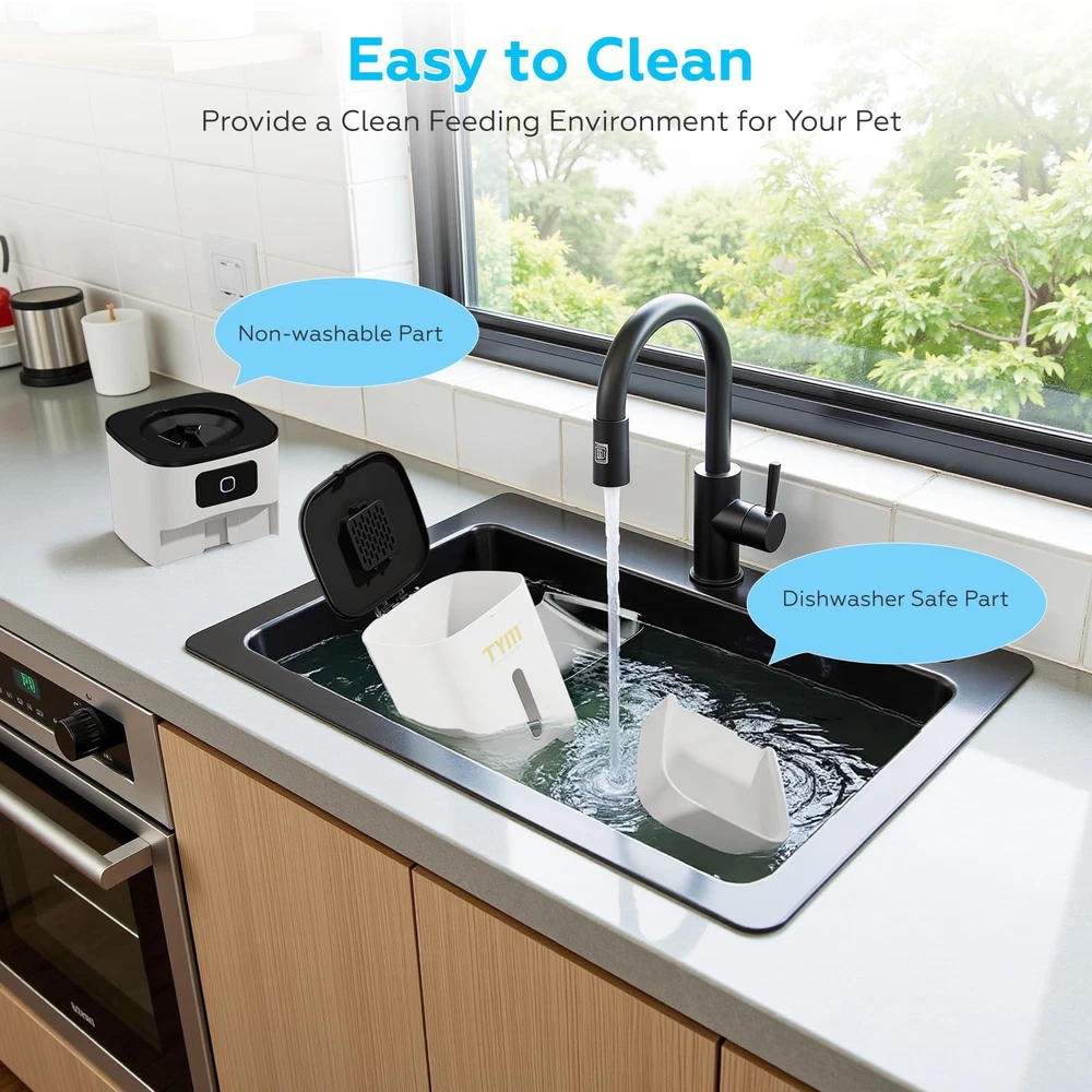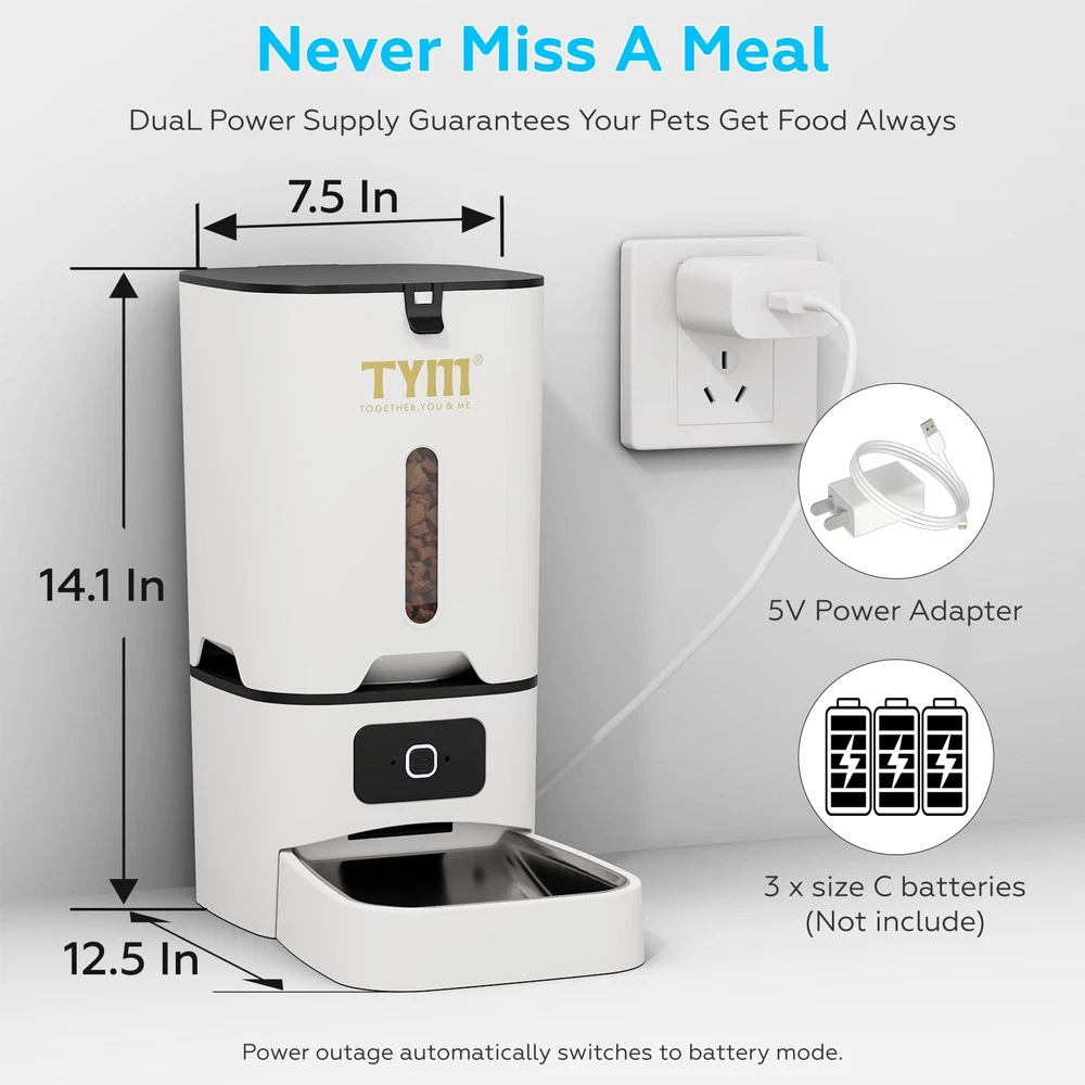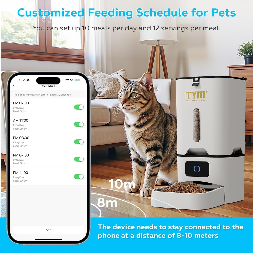Automatic pet feeder, controlled by APP, dual power design, with a large capacity of 7L, can set the time, amount, and frequency of automatic food feeding, and can also manually operate food feeding. It is very convenient to use and has 24-hour online . If you have any questions about the product or usage, please our . 【APP Easy Setting】The automatic pet feeder adopts APP control (Does not support long-distance remote control). Simply open the app within 10M to easily connect the device and set the feeding time and portion size. After leaving home, the unconnected feeder will still dispense food on schedule according to the pre-set feeding plan. If you want to feed immediately, you can also press the feeder switch twice to instantly dispense fresh food. Note: If no battery is installed, the software may display a low-battery warning (software bug). Please do not be concerned; the device is functioning normally. christmas cat gift 【7L Large Capacity】You no longer have to worry about running out of food, can support weeks or even a month without adding food (for small and medium-sized dogs or cats), suitable for multi pet households (especially multi cat households). The timed cat food container keeps the food fresh, while the dog food dispenser automatically distributes the food evenly. Whether you are working overtime, traveling, or on vacation, daily and late night feeding during this period can be automated 【Dual Power Supply】This cat feeder automatic features a dual-power design, including a 5V/1A DC adapter and a backup battery system equipped with 3 C-type batteries (not included). In case of power outages, the feeding schedule remains uninterrupted, ensuring pets are never left hungry due to accidents. Thoughtful details like an anti-bite power cord and plug ports make it safer to use 【Slow Feeding Mode】cat feeder strictly designed according to the feline nature of "eating less, eating more", to avoid overeating and obesity caused by excessive cat food at once (up to 10 times a day, with a maximum of 12 servings per meal). At the same time, it can also ensure that picky eaters receive sufficient nutrition. For cats that need to lose weight or gain weight, you can precisely control the amount of grams per meal and view feeding records 【Fresh & Comfortable】This auto cat feeder comes with a sealed desiccant and a lockable lid to prevent tipping and food spillage, ensuring food storage and freshness. Food oversized stainless steel bowl, easy to disassemble and clean, healthy and hygienic, effectively preventing cats from developing black chins. The 45 ° tilted design of the food bowl allows your pet to eat in the most comfortable state 【】Our automatic BT pet feeder comes with a free -year and 24/7 online support. Should you have any questions, our team is ready to assist via your order page, , or . We are committed to resolving your concerns with our full support