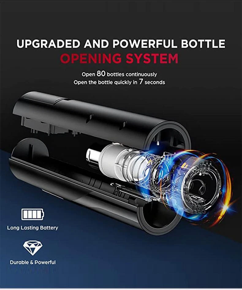 FREE SHIPPING 30 DAYS RETURN EASY PAYMENT Automatic Electric Wine Openers for Beer USB Rechargeable Beer Bottle Openers Co Features: Shining color and fashion appearance, for party, wedding, and home use Fits most standard wine bottle sizes Open the wine in 6 - 8 seconds Compatible with rechargeable battery and4*AA alkaline battery ( not included ) Transparent corkscrew cover to watch the stopper out Food-grade screw, safe and durable Easy operating buttons to push and pull the cork Aluminum alloy housing and ABS transparent screw cover Less than 75dB low working noise Specifications: Material: ABS Size: 215*48mm Color: Black Battery Package Include: 1 x Electric Wine Opener(Not Included Battery) 1 x Foil Cutter 1 x Chinese and English User Manual Rechargeable Package Include: 1 x Electric Wine Opener 1 x Foil Cutter 1 x USB Cable 1 x Chinese and English User Manual Battery Set Package Include: 1 x Electric Wine Opener(Not Included Battery) 1 x Foil Cutter 1 x Wine Stopper 1 x Wine Pourer 1 x Chinese and English User Manual Rechargeable Set Package Include: 1 x Electric Wine Opener 1 x Foil Cutter 1 x Wine Stopper 1 x Wine Pourer 1 x USB Cable 1 x Chinese and English User Manual Note: 1.Please allow slight deviation for the measurement. 2.Due to the light and screen difference, the item's color may be slightly different from the pictures,thanks for understanding. We accept the //customization. 1. enough stock, factory Outlet. 2. Priority delivery, order processing within 48 hours. 3. fast Logistics 15-25days . 4. USA/CA /RU / ES / CZ /FR /PL have local . Faster delivery! 5. NOT include a receipt or an invoice. 6. If you need customization any LOGO or Other,please leave a message to us.(above 50PCS) Any questions, please feel free to contact us. Reply within 24 hours REVIEWS The product came very well packaged. I'm very happy. thank you for everything. Seller strongly recommended. This is great! I definitely recommend! Product looks amazing Delivery was fast. Excellent seller, great communication. I advise everyone