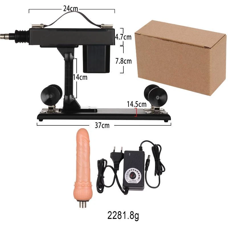Discreet pack age Description Item: Machine ENHANCED SEX L IFE : This hands-free automatic sex machine for women and men will do all the work and spice up your sex life to the next level. Ride deep and endless pounding all the way to a mind-blowing orgasm! PERSONALIZED PLEASURE : Our thrusting plug device can be adjusted 170 degrees to find the perfect angle to make your body quiver from sexual satisfaction. The speed adjusts from gentle stroking to hammering 450 times a minute to match your every mood. SUPERIOR STABILITY : This love machine anchors firmly to any flat surface even during your wildest sessions due to its rock-solid base and four strong suction cups. DEPENDABLE POWER : Our plug thrusting machine's smooth and powerful motor is designed to provide non-stop head-spinning carnal gratification. The steady gearing ensures each stroke is firm and vigorous for consistently strong stimulation. PROFESSIONAL PACKING : There is no need to show off your improved quality of life, which is why we provide discreet packaging and shipment of your new toy. Your naughty little secret is safe with us. Specifications Material: Steel, ABS Plastic, PVC Color: Black Overall Dimensions: 14.6x5.9x6.7 in. (37x15x17 cm) Support Rod Length: 5.5 in. (14 cm) Plug: 7 in. Length, 1.4 in. Girth Input: 110-240V, 50-60Hz AC Rated Power: 50W Operating Noise: 40-60 dB Piston Stroke: 2.4" (6 cm) Machine Weight: 3.1 lb. (1.4 kg) Total Weight: 5.1 lb. (2.3 kg) Package List 1 x Sex Machine 1 x Wired Speed Controller 1 x Plug Item: Realistic Dildo Specification: Material: Soft Silicone Color: Skin Size: Total Length : 8 .8''/22.5cm Penis Length: 6.7''/17cm diameter: 2.2''/5.5cm Weight: 550g 5.Package Included: 1*Dildo Notes: Please feel free to contact us if you have any questions. If you contact us out of office hours, we will get back to you the next business day. Thank you for your understanding.