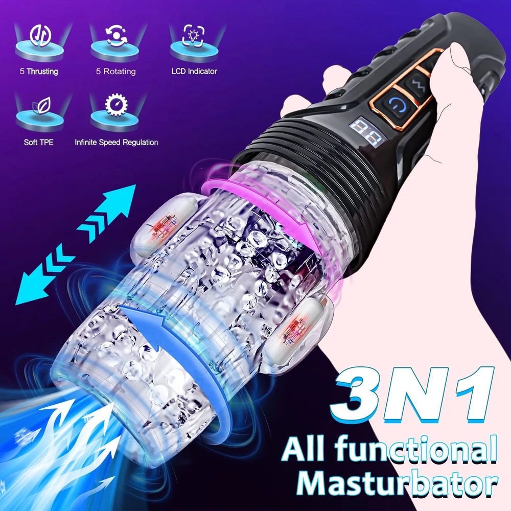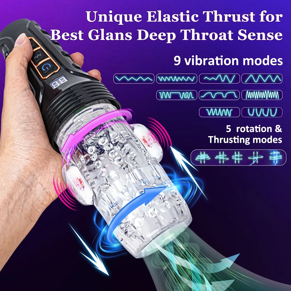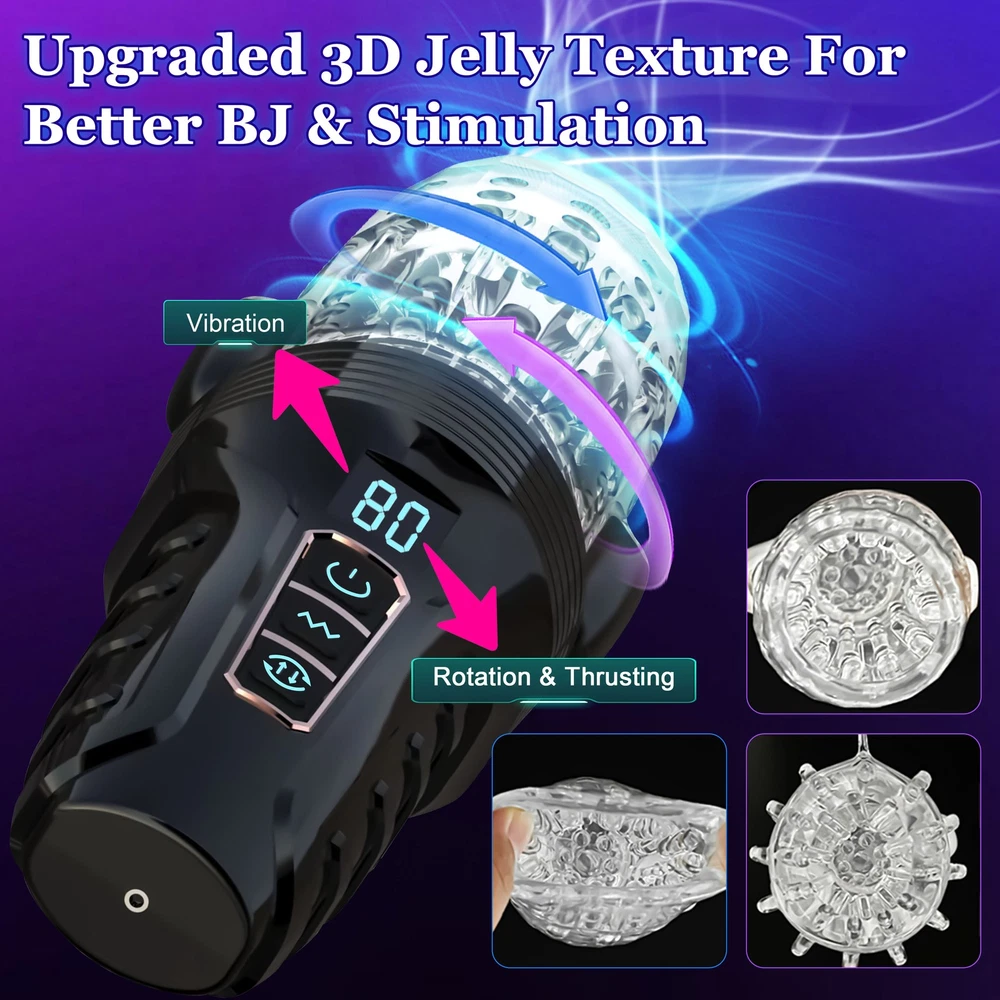D iscr ee t Package <> <> Feature 【9 types of vib ration, 5 types of thrusting and 5 types of rotation】 This male suction masturbator is equipped with 5 powerful Thrusting modes and 9 vibration modes. Unlike other products, it also adds 5 rotation modes to bring you an extraordinary experience 【High quality】 materials are made of soft and elastic TPE and silicone. Its 3D channel is made of ultra soft and super elastic silicone, which can gently and pleasantly absorb your body. Flexible design suitable for adult use, suitable for various body types, with numerous small protrusions on the inner wall that provide friction and enhance pleasure with each use 【Easy to clean and USB charge】 This men's sex toy has a detachable sleeve for easy cleaning. Simply rotate gently to remove the silicone core, clean and dry it, and prepare for the next use. 【Low noise】 This male comfort device with low noise and less than 50DB can with thrust vibrate, and rotate, making it quiet to operate. Using discreet packaging to protect your privacy. Product Information Power supply: USB rechargeable Size: 2.8 * 3.4 * 10.2 inches Insertable length: 9cm/3.54in Insertable diameter: 5cm/1.96in Duration of use: Approximately 60 minutes (fully charged) Material: ABS+TPE Waterproof rating: IPX5 Function: 9 types of vibration, 5 types of thrusting&Rotation Package contains: 1 x Automatic masturbator 1 x USB charger 1 x User manual Tips 1, This product is only suitable for adult use. 2, please fully charge the product before use. if it is not used for a long time, it needs to be recharged every 3 months. 3, This product does not require high temperature disinfection, it is suitable for indoor storage.
