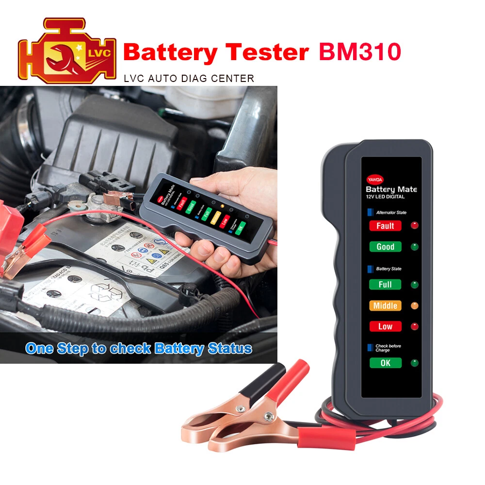 12V Digital Car Battery Tester Alternator Motorcycle Battery Tester with 6 LED Lights Display - 12V led digital battery mate is a simple but efficacious battery testing tool which can determine the battery state, it's easy to use and be understood. Main Functions: 1. Checking charge level 2. Functional test of dymano 3. Checking battery starting capability 4. Battery overload display Connections: Attach the cable clip of the red cable to the plus point(+)of the battery and the cable clip of the black cable to the minus point(-)of the battery. Different Led display to show Battery Sate: Display 1: All Led lights off; Testing results: none Charging Voltage, Dead Battery Display 2:”ON” led twinkling, other Led off; Testing results:4.6-11.2V Charging Voltage, Engine being hardly turned on, turn off all electrical equipment and charge battery immediately. Display 3: ”ON” Led ON,”LOW” Led twinkling; Testing results:11.2-11.6V Charging Voltage, Low charged Battery, being charged immediately. Display 4:”Low” led on, ”Middle” led twinkling; Testing results: 11.6-12.2V Charging Voltage, Middle charged Battery, better being charged sooner. Display 5: “Middle” Led on; Testing results: 12.2V Charging Voltage, Middle charged Battery, better being charged. Display 6: “Middle” Led on, ”Full” Led twinkling; Testing results: 12.2-13.1V Charging Voltage, Middle charged Battery, better being charged. Display 7: “Full” Led on, ”Good” Led twinkling; Testing results: 13.1-14V Charging Voltage, Good battery, Full Charged Display 8:”Good” Led on; Testing results: 14V Charging Voltage, Good battery, Full Charged. Display 9:”Good” Led on, “Fault” Led twinkling; Testing results: 14-16V Charging Voltage, Battery may be damaged, Check the engine and tester. Display 10:“Fault” Led on; Testing results: Above 16V Charging Voltage, fault Battery. Feature: 6-LED display, clearly present the alternator and battery state. Two testing clips for safe and easy operation. Small size and light weight, convenient to carry. Fit for all 12 V car, motorcycle battery etc. With a good chip inside, not easy to get hot on the surface. 6 Led Lights: Alternator state First light (Red): Fault Second light (Gree): Good Battery State First light (Green): Full Second light (Yellow): Middle Third light (Red): Low Check Before charge First light (green): OK Specifications: LED quantity: 6 (2 red, 3 green, 1 yellow) Material of wire: 0.06 square millimeter copper Max. voltage / current: 12V / 15A Length of wire: 14.2inchs/36.2cm Using: Improve driving safety Material : Plastic, Copper Color : Gray Product size (L x W x H) : 4.7 x 1.9 x 0.75inches/ 12 x 4.8 x 1.9 cm Package size (L x W x H) : 5.6 x 2.2x 1.4 inches / 13.5 x 5.6 x 3.6 cm Packing list: 1 x 12V battery tester 1 x user manual Payment Delivery details Terms of sales About us Contact us Payment We accept all common forms of payment such as Credit cards、Debit card、Google Pay ect. Payment should be made within 7 days after bidding ends. Otherwise a Unpaid Item case will be opened to you. We are not responsible for buyers’ local taxes. Please include your special requests in eBay note if there is any. Delivery details Order will be shipped within 1 business day after payment confirmed. We have warehouse in USA, From our US warehouse via UPS or USPS shipping. Delivery time varies from 2 to 5 business days. We will ship according to your eBay address. Please make sure it is correct and include phone number for delivery. If you do not receive your order in the estimated time, please contact us, we would do our best to serve you solve the problem. Please include your special requests in eBay note if there is any. Terms of sales Return Policy Please return the item within 60 days after receiving if you are not happy with your purchasing.All returns are expected to be in original conditions, please email us first for return address and instructions. We are authorize distributor, our all items are 100% original and Our devices have warranty, 5 Year free repair for the devices. Please contact us firstly when you need warranty service. In case an item arrives faulty, please contact us as soon as possible and keep it unused. We will instruct you on how to return and get refund or replacement. If the item has been used, we have the right to decline your claim. Items should be returned on buyers' cost for repair or replacement. About us Who We Are? We are specialized dealer of On-Board Car Diagnostic tools and automotive electronics for more than 15 years. We are authorized first class distributor of Launch, Foxwell, Autek, Ancel, Innova, Autophix, Thinkcar, Kzyee brands, and more brands will be show in our store in near future. What Do We Have? We have office and warehouse in US to ensure fast shipment and after-sale service. We have more than 1000 employees devoting to customer satisfaction. Contact us 1:If youhave any problem about the goods, please contact us before leaving Neutral/Negative feedback.We promise to help you solve it asap, and make you feel satisfactory absolutely. 2: our business time: M-F: 9:30AM - 18:00PM BST (Beijing Standard Time) 3:Please leave us Positive Feedback and 5-stars ★★★★★ after you received our package you are satisfied with it. as you know, every seller works hard for the positive feedback. We will do the same as soon as we can too. On Sep 26, 2024 at 23:45:37 PDT, seller added the following information: