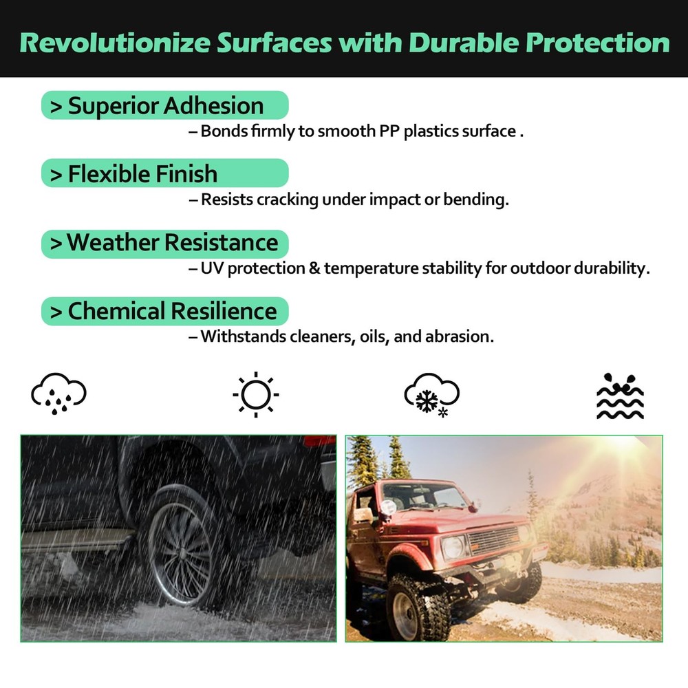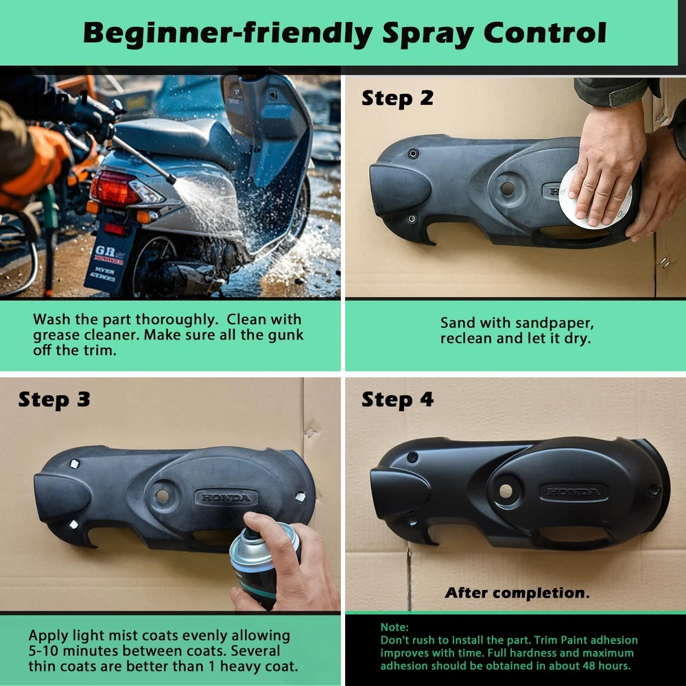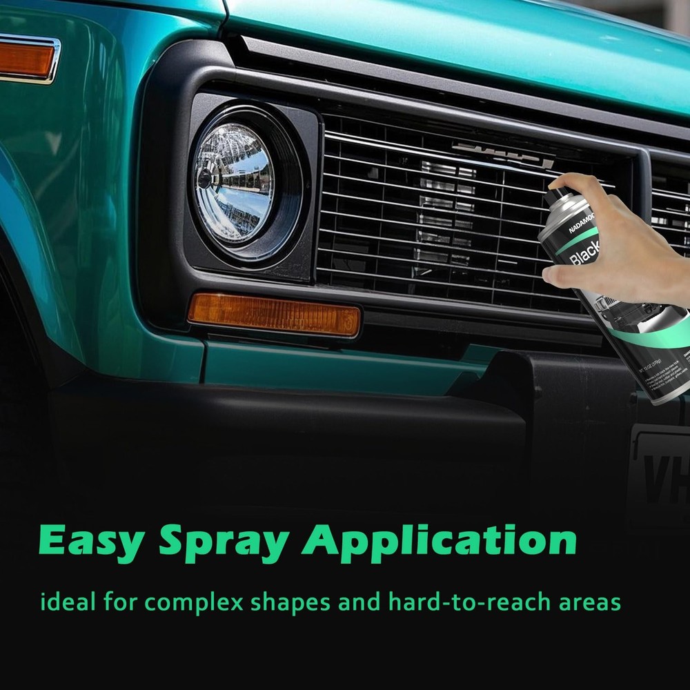 Automotive Black Trim Spray Paint, 1 Can Multi-Surface Adhesion: Engineered to adhere flawlessly to rubber/ vinyl/ plastic surfaces. Whether you’r restoring a scratched car bumper, reviving faded patio furniture, or upgrading faded plastic appliances, this spray paint ensure the need for resilience finish. Professional-Grade Black Trim Spray Paint also bonds to metal, wood, ceramic, creating a seamless finish. Good Weather Resistance : Engineered for relentless outdoor durability.The UV-Resistant Black Paint survives -40°F to 150°F, prevents fading better than any normal black spray paint—crucial for car trims and outdoor furniture in sunbelt states. Good Chemical Resistance: The black coating forms a barrier that resists the detrimental effects of harsh chemicals, such as cleaners, oils, salt, and acidic contaminants. This ensures that the car bumper and outdoor patio furniture remain unscathed and retain their pristine condition even in challenging environments. Effortless Application: Spray application is perfect for Beginner DIYers—no tools needed! It not only eliminates drips and streaks, but also has the ability to cover hard to reach areas. Ideal to coat tight spaces like bike frames and car radiator grilles without awkward hand angles. 1 Can;Color:Satin Finish Black;13 oz/ 450ml per can;1 can of paint covers about 10-12 sq.ft area for 2 light coat;