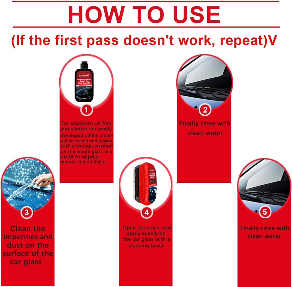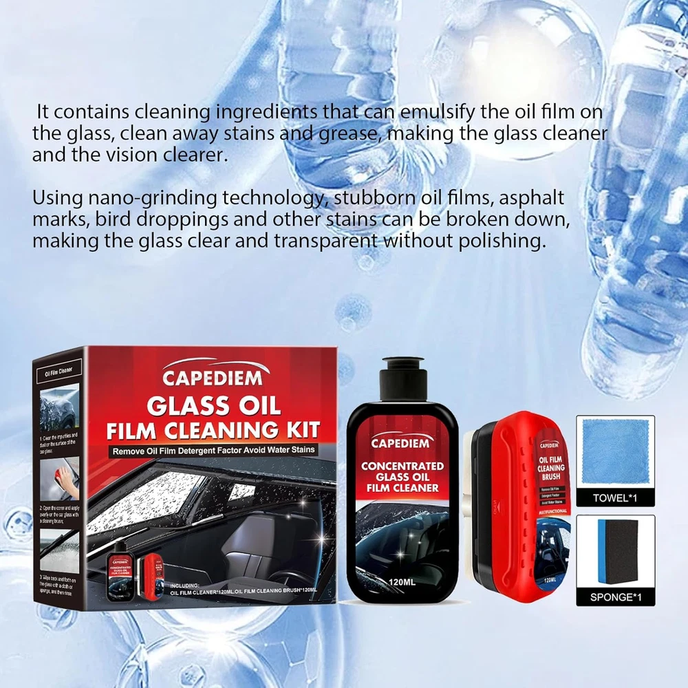 Store New Arrivals Add to Favorite View Feedback Contact Automotive Oil Film Cleaning Brush, Reusable Oil Film Cleaning Brush, Oil Repellent Film for Car Windows, Improves Clarity and Visibility,Oil Film Cleaning Emulsion,Universal Glass Cleaning Wipe Board Description Item model number NQJSE8 Brand CAPEDIEM Country of Origin China Material Feature Natural Scent Unscented Package Dimensions 5.43 x 5.31 x 2.13 inches; 10.97 ounces Manufacturer CAPEDIEM 【Oil Removal Film Protection】 With reduced rainwater adhesion and an invisible protective layer, eliminate fogging and ensure clear vision on rainy days. Enjoy safe, comfortable driving with this car glass oil film cleaner.Glass coating for windshield is formulated with a hydrophobic effect that repels water and ensures optimum visibility in rainy conditions 【Automotive Oil film Cleaning Brush】 Oil Film Emulsion Glass Cleaner can effectively clean the glass surface. Using nano-grinding technology, adding surfactants, etc., to strongly decompose the common oil film, water marks, gum and other stubborn on the glass. 【LASTING PROTECTION】Glass Cleaning Board: When you use our car oil film cleaning glass, it creates a protective barrier that helps repel dirt and oil, keeping your windshield clearer for longer 【Oil Film Cleaning Brush Easy to use】Glass Cleaning Board : Universal Glass Cleaning Wipe Board, Wash the glass surface with water, apply oil film cleaner on the wet sponge, wipe it evenly back and forth, and then wash it with water, creates a clean appearance, and makes your car shine as before. 【Excellent After-sales Service】 We’re so confident that you will like our automotive glass cleaner. If you have any problems with it, please contact us, we promise to give you a satisfactory solution after confirmation. Product Description oil film remover for car window car glass oil film cleaner universal glass cleaning wipe board ABOUT US We offer the best prices around on high quality products. Our E-store includes media such as books, movies, music and games while offering electronics, toys, sporting apparel, clothing, tools, general home, garden items and more. SHIPPING We are always working hard to ensure your package arrives as soon as possible. Please understand that some factors like weather, high postal traffic, and the performance of shipping companies are outside of our control. We offer free shipping to the lower 48 states and ship within 2 business days of payment, usually sooner. We do not accept P.O. Boxes. Please provide a physical address. RETURNS We offer a 30-Day Return Policy on items which you are not completely satisfied with. You have the option for a full-refund or an exchange of the item. No returns are available on items shipped outside of the USA. PAYMENT We accept PayPal. CONTACT US This page content is yet to come Please ad us to your favorite seller and visit again later Thank You CUSTOMER SATISFACTION We try our very best to make sure every customer is completely satisfied. If there's a problem, message us! We're happy to help.