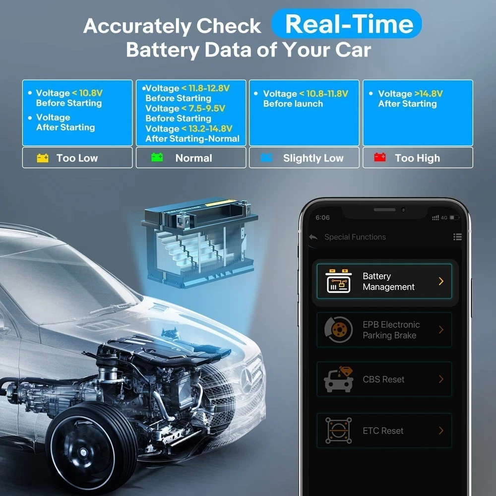 AUTOPHIX 3910 for BMW Bluetooth/Wireless Diagnostic Tool Code Reader All System, 8 Reset Function, lifetime Free Update 1.Full OBDII functions: Read Codes, Erase Codes, Live Data Stream, Freeze Frame, O2 Sensor,I/M Monitor Readiness, Evap System Test, Retrieves Vehicle Information; 2. EPB Reset: Reset the calipers, brake discs or pads after the electronic parking brake system is repaired; 3 .BMS Reset: Reset after replacing the battery to clear the low battery fault information of the original battery and protect the new battery; 4.Immobilizer: Disable a lost vehicle key to protect the vehicle from being stolen and add the new key; 5.ABS Bleeding(Top Popular): Perform to bleed the brake system to restore ABS braking sensitivity and obtain a firm brake pedal; 6.SAS Adjustment: Clear the fault steering angle sensor memories, perform reset steering angle sensor, and turn off steering wheel warning light; 7. Throttle Relearning : Reset the throttle actuators to accurately regulate throttle (or idle engine) operations, helps keep your idling and acceleration smooth; 8.Airbag Repair: After replacing the Airbag, reset the Airbag data and clear the collision data; 9. Oil Light / Service Reset: Allows you to reset the service lamps on the instrument cluster; Powerful Full System Diagnosis, Not Only for Engine Check! >>>>1.Powertrain Module Engine, Transmission, Battery Energy, All wheel, Transfer case, Electrical Machine Electronics, Diesel Fuel Pump, Thermal Management, and more. >>>>2.Suspension Module Accumulator Management Electronics, Steering, Integrated Chassis Management, Tyre Pressure Control, Active Cruise Control, Braking System, Suspension, TPMS and more. >>>>3.Body Module SRS Airbag, Camera, Audio Radio, Gateway, Touch box, Light, Battery Charging System, Head up Display, Seat & Door Motor system, Immobilizer, ABS ESP system, Air Condition,Electric Windows, Telephone, and more. >>>>4.Electronic Module Centralized control system for engine and power transmission, Chassis integrated control and safety system,Intelligent body electronic system, and more. Warm Tips: Support car system will vary from pecific year and model, and it is NOT a bidirectional scanner. Pro-quality full Systems Diagnostics OBD2 Scanner for BMW vehicle group As an enhanced OBD2 scanner Compatible with BMW/ MINI/ Rolls Royce, AUTOPHIX 3910 will serve you well with necessary features, being a wonderful option for DIYers, car enthusiasts, and mechanics as well. Get a real pro-quality automotive diagnostic scan tool that has everything you expect: >>1.An affordable diagnostic scanner with deep detection on Powertrain Module,Suspension Module, Body Module, Electronic Module for BMW/ MINI/ Rolls Royce after 1996. >>2.Full systems diagnostic tool: access to ECU information, read & erase fault generic / manufacturer-specific codes, turns off warning lights. >>3.AUTOPHIX 3910 Bluetooth diagnostic scan tool has many popular service functions including Service Reset, EPB Replace Brake Pad, Battery Management, Throttle Learning, CBS Reset, ETC Reset, Supports OEM level diagnostics. >>4.All OBD2 Modes with all 8 test modes works on most OBDii / CAN cars made from 1996 and forward. >>5.Battery Voltage Monitor: check vehicle battery voltage status in real time. >>6.The upgraded 3910 Bluetooth diagnostic tool can help you read many data stream parameters for VAG vehicle. such as engine RPM, speed, coolant temperature, voltage, and so on. Allows you to more accurately and simply understand the situation of your vehicle. >>7.Automatically generate Diagnostic Report, When you encounter a problem that you do not understand, you can print the diagnostic report to the mechanic. >>8.Quick to learn and easy to use: Support Android 4.2 ; logically well-laid interface; DTC LookUp Library. >>9.Free lifetime update via APP; Feedback function for timely online technical assistance. >>10.Multilingual support: English, French, Spanish, German, Italian, Chinese, Cestina. >>11.Automatic connection: Don't worry about how to connect the product to your mobile phone, just plug the product into the OBD interface of the car, then turn the ignition on, and then open the "Autophix" APP to automatically connect successfully. What Makes the AUTOPHIX 3910 Better Than Other Scanners? Support OBD Full-Mode Diagnostics Mode 1--Live Data/Data Stream shows read the real-time data stream in character. Mode 2--Freeze Frame is a snapshot of the operating conditions at the time of an emission-related fault. Mode 3--Read Fault Codes Option is used to read the current, pending or permanent trouble codes. Mode 4--Erase/Clear Codes Option allows you to clear the existing or historic trouble codes. Mode 5--O2 Monitor Test displays oxygen sensor monitoring test results from the vehicle’s memory. Mode 6--On-Board Monitoring Test can be utilized to read the results of on-board diagnostic monitoring tests for specific components/systems. Mode 7--I/M Readiness checks if the various emission-related systems on the vehicle are operating normally. Mode 8--Component Test displays a list of components and their locations on the vehicle. Mode 9--Vehicle Information allows you to view the relevant information of the vehicle, including VIN (Vehicle identification Number), CID (Calibration ID) and CVN (Calibration verification number). Enhanced Data Stream Mode In the Data Stream function, you can view all items, selected items. The upgraded 3910 Bluetooth diagnostic tool can help you read many parameters for VAG vehicle. such as engine RPM, speed, coolant temperature, voltage, and so on. Allows you to more accurately and simply understand the situation of your vehicle. Voltage Monitor AUTOPHIX 3910 Bluetooth code reader support gather real-time battery voltage, analyze information automatically in no time, and display results in a graph, instead of a direct result on the screen that an ordinary code reader, which will ensure that you can access and analyze the accurate live data a