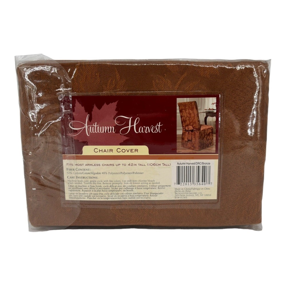 Transform your armless chair with this brand new Autumn Harvest slipcover. The rich bronze color and cotton-polyester material make it a perfect addition to any home. The slipcover is suitable for chairs up to 42 inches and is part of the Autumn Harvest product line. Get ready to enhance the look of your furniture with this slipcover.