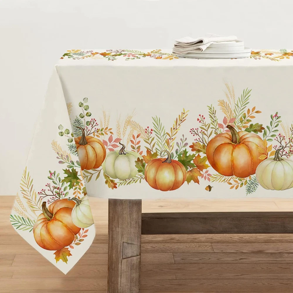 Autumn Pumpkin Vine Thanksgiving Tablecloth 60x84 Inch Rectangle Holiday Decor