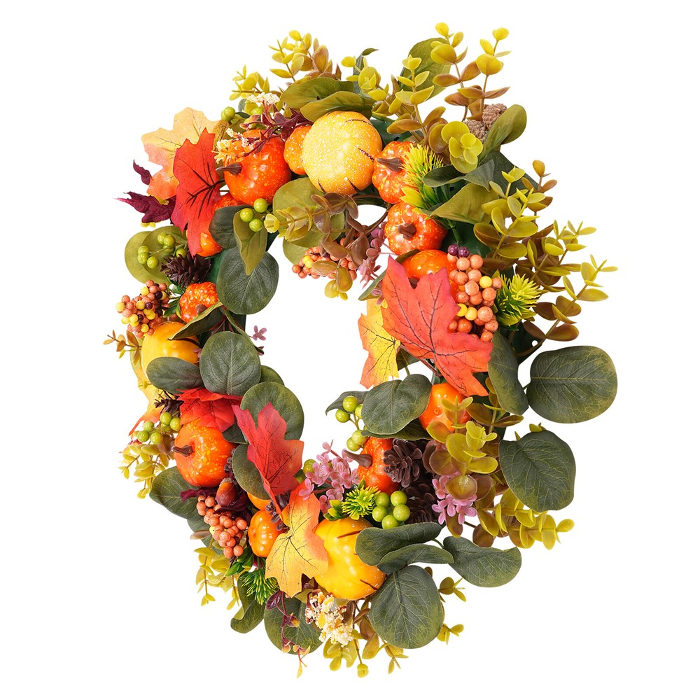 This gorgeous autumn wreath instantly adds cozy fall vibes to any space! The vibrant orange, yellow, and green colors pop beautifully, and the mix of pumpkins, fruits, and leaves looks so realistic. Love that it's handmade with quality materials yet lightweight and easy to hang. Perfect for sprucing up doors, walls, or windows both indoors and out. The countryside-style design brings such warm, festive energy without being over-the-top. Arrived ready to display with no assembly needed - just unwrapped and hung it up! Makes my home feel instantly more seasonal and inviting. Exactly as described, great value for such a pretty decorative piece.