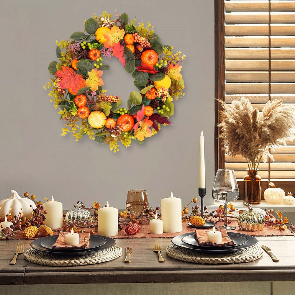 Specification Material: Plastic, Foam, Silk Cloth Craftsmanship: Handmade Color: Orange+Yellow+Green+RedA Shape: Circular Style: Countryside Style Theme: Pumpkin+Fruits+Leaves Mount Type: Wall-Mounted Assembly Required: No Width: 10cm/3.94in Product Diameter: 50cm/19.69in Package Size: 35*35*8cm/13.78*13.78*3.15in Gross Weight: 0.6kg/1.32lbs Net Weight: 0.45kg/0.99lbs Package Included 1 * Pumpkin Wreath Autumn Pumpkin Wreath Simulation Wreath Artificial Window Out/Indoor Decorations Description Decorate your home with our pumpkin wreath to create a warm atmosphere. It uses exquisite vines paired with simulated pumpkins and fruits, showcasing its delicacy in every detail. It is environmentally friendly and longevity, which can add atmosphere to your holiday, convey warm blessings, and make your home a warm harbor. Specification Material: Plastic, Foam, Silk Cloth Craftsmanship: Handmade Color: Orange+Yellow+Green+Red Shape: Circular Style: Countryside Style Theme: Pumpkin+Fruits+Leaves Mount Type: Wall-Mounted Assembly Required: No Width: 10cm/3.94in Product Diameter: 50cm/19.69in Package Size: 35*35*8cm/13.78*13.78*3.15in Gross Weight: 0.6kg/1.32lbs Net Weight: 0.45kg/0.99lbs Package Included 1 * Pumpkin Wreath Key Features High-quality Materials. This product is made of foam, silk cloth, and plastic by hand. It will not fade or deform easily, and can still maintain a beautiful appearance after a long time of use. Effortless Care and Use: This item does not require watering, trimming, and fertilization, avoiding the trouble of daily caring, and saving money and effort. In addition, using artificial plants can avoid the trouble of allergies . Eco-friendly & Economical: This product uses artificial pumpkins, fruits, and leaves to create its shape, without using real ones. It can be reused, which is environmentally friendly , and very affordable. Colorful Appearance : The simulated pumpkin shape is lifelike, with rich colors ranging from orange to yellow to red and green. Each pumpkin is filled with the atmosphere of autumn and looks lifelike. Beautiful Decoration: The colorful circular shape paired with lifelike pumpkins and fruits will make this product an eye-catching focus whether placed in the living room or dining room. Atmosphere Maker: The warm color of this product is very suitable for adding a festive atmosphere to family gatherings and celebrations during Halloween and Thanksgiving. Ready to Use: After receiving the package, you can take out the product and tidy it up to start using it without the need for complex assembly processes. User-friendly : There are many small holes in the circle behind the product, allowing you to hang it on doors or walls in various directions. Ideal Gift: The beautiful appearance of this product makes it a gift for family and friends on holidays or ceremonies to express warm blessings and care. Details Clear Texture: The leaves have clear lines and a realistic and natural texture, adding a more realistic natural atmosphere. Pinecones: They add more touch of autumn to the product, making it look fuller and more gorgeous. Application It can be used for indoor and outdoor window decorations, homes, hotels, offices, gardens, porches, balconies, landscapes, backyards, entrances, archways, gazebos, restaurants, fireplaces, aisles, stairs, wedding tables, dining tables, shops, and shopping mall decor and they are suitable for weddings, baby showers, baby parties, graduations, celebrations, parties, anniversaries, outdoor photography, snd filming. Notes During transportation, it may cause deformation of the product. You only need to tidy it up. Artificial flower wreaths are different from real flowers and are handmade. Occasionally, there may be a residue of adhesive, rough edges of petal cutting, or leaf detachment that can be reinstalled with glue (not included), which are normal phenomena and do not affect use. Please confirm that you don't mind before purchasing. Please do not expose this product to sunlight or soak it in water for an extended period of time. Please allow the slight color difference caused by the shooting light and 1-3cm error due to manual measurement, and make sure you do not mind before ordering. Payment Delivery details Terms of sales About us Contact us Payment We accept ebay payment 。 Fees such as import duties, taxes are not included in the item price or shipping costs. These charges are the buyer's responsibility. Delivery details Shipping: 2-9 working days to: USA Terms of sales We maintain high standards of excellence and strive for hundred percent customer satisfaction. Feedback is very important to us. We hope that you contact us immediately before you give neutral or negative feedback, so that we can address your concerns. It is impossible to address issues if we do not know about them! About us Your satis faction is our ultimate goal. We work hard to earn your trust and future business. Our certified technicians have tested each item before shipping. The unit comes with 1 year limited warranty on all manufacturing defects. a) If you receive a defective item, you may return it or ask for a discount. Please contact us within 14 days after you receive the package. b) What you returned must be intact and in its original packaging as re? u. Customer is responsible for shipping costs of the returned item. c) We will cover the cost of shipping back t with the shipping rate indicated in the registration page. We will send you a new unit or refund the full payment you paid. Thank you. Contact us Business Hour Business Hour: Monday To Friday: 8:30 AM to 5:00 PM (Beijing China time) Due to time zones, our reply to your questions may not be immediately. But within above working time, we will reply your email within 24 hours. If it's non-workdays, please kindly be patient and wait till Monday. Please contact us with ebay message. Please feel free to contact us if you have any questions. Monday To Friday: 8:30 AM to 5:00 PM (Beijing Ch