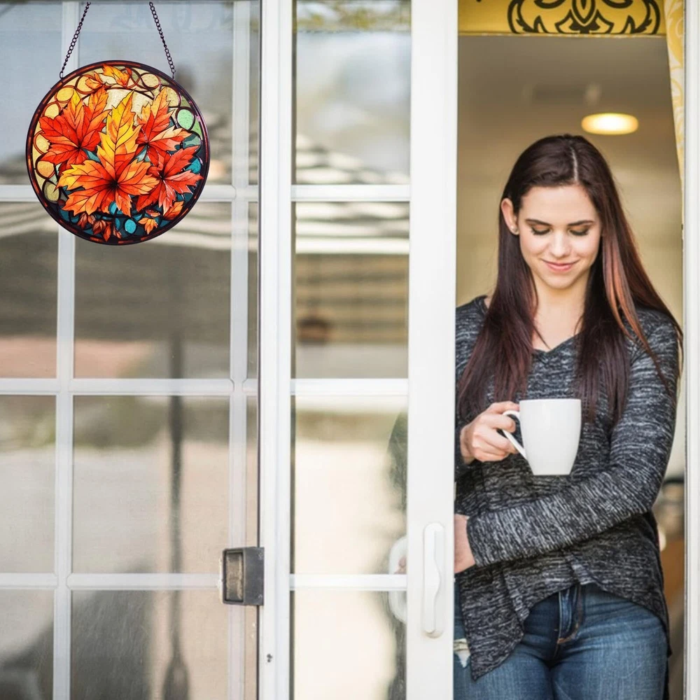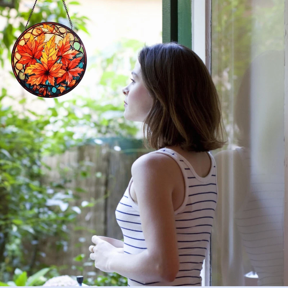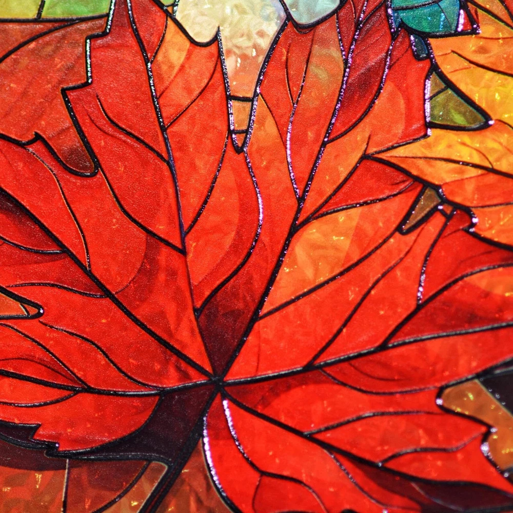 【Autumn Maple Leaves Suncatcher for Window】Personality stained glass window hanging suncatchers are perfect home window decorations, fall leaves is beautiful hanging in indoor window autumn suncatchers for windows are decorated in bright colors, and colorful patterns can always be seen from the inside out, illuminating life. 【Great Fall Leaves Decor】When the new autumn comes, stained glass window hanging warm autumn colors always bring good luck first. Yellow maple leaf trees are traditionally regarded as souvenirs for their harvest and festivals. They seemed in the sky shinning when the sunlight passes through it. 【Unique Thanksgiving Gift】Stained glass window hanging are great decoration for home, office, shop, restaurant, window display, coffee shop or wedding party decoration. There is no doubt that stained glass Sunflowers and butterflies suncatchers for windows is a unique memorial gift for the your lover. 【Colorful Transparent Hangings】Autumn Maple Leaves stained glass window hanging made of 100% GLASS, not just printed on poorly cut out metal, it is safe and durable, and sun catchers not easy to corrode.The transparent painted window suncatcher shape will present a very good effect in the sun, making the whole window look colorful. 【Guarantee & Service】 We offer you risk-free satisfaction guarantee to let you buy with confidence.If for any reason you are not fully satisfied about suncatcher for window, contact us for the first time, we will do everything we can help. Including returns and exchanges.
