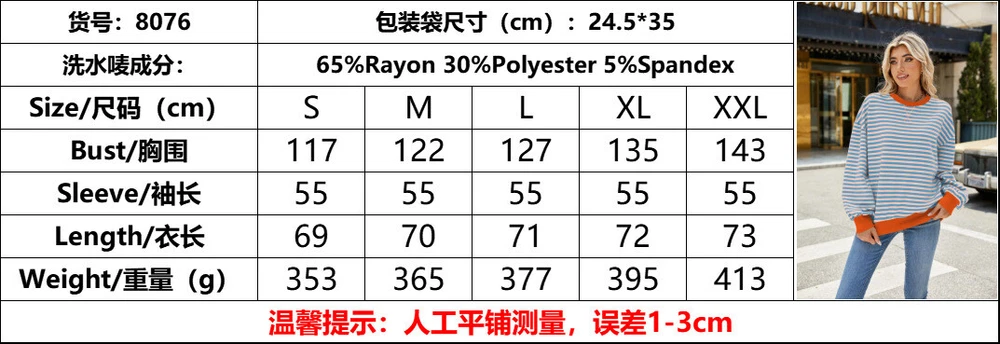 Store category Sign Up Now ! You may also like Product Description Pattern: Stripes/plaid Style: Pullover Version type: Loose type Length: medium length (65cm< 80cm) Sleeve length: Long sleeves Sleeve shape: Shrug Collar type: round neck Thickness: Medium Popular elements: color contrast Craft: Collage/stitching Main fabric composition: cotton Please note: 1.Please allow a little error due to manual measurement. 2.The color maybe a little difference because of the light,screen reflectio etc Payment Delivery details Terms of sales About us Contact us Payment Accept all payment. We send all the items are based on your paypal address. Therefore, please make sure your paypal address is valid. Delivery details We will arrange shipping for you within 10 days after payment cleared except the holidays Hi ,Great buyer : I will send it out as soon as possible. The company has many stores. Send in order of order. Processing time: 2-4 days. The system automatically uploads tracking numbers. Transportation time: 8-12 working days.(Europe and North America and Australia) Transportation time in the Middle East region and Northern Europe : 10-15 days. Asian transportation time: 5-10 days African transportation time: 30-40 days. Transportation time in South America: 30-40 days Please understand. Wishing you a pleasant shopping experience. . Terms of sales It's highly appreciated you leave us positive feedback and 5 star rating comments if you are satisfied with our service ! Your comment is very important in our business success. About us In China we have our own factory, we support a large number of wholesale and customized, price concessions. And we can achieve long-term cooperation. Provide products for your store. Contact us Our team is with the collection of research, production, distribution and service, Expect in the goods quality be still on the price, after-sales service, we all will keep in the middle of go together of advantage position, real attain the ream customer satisfaction. Feedback