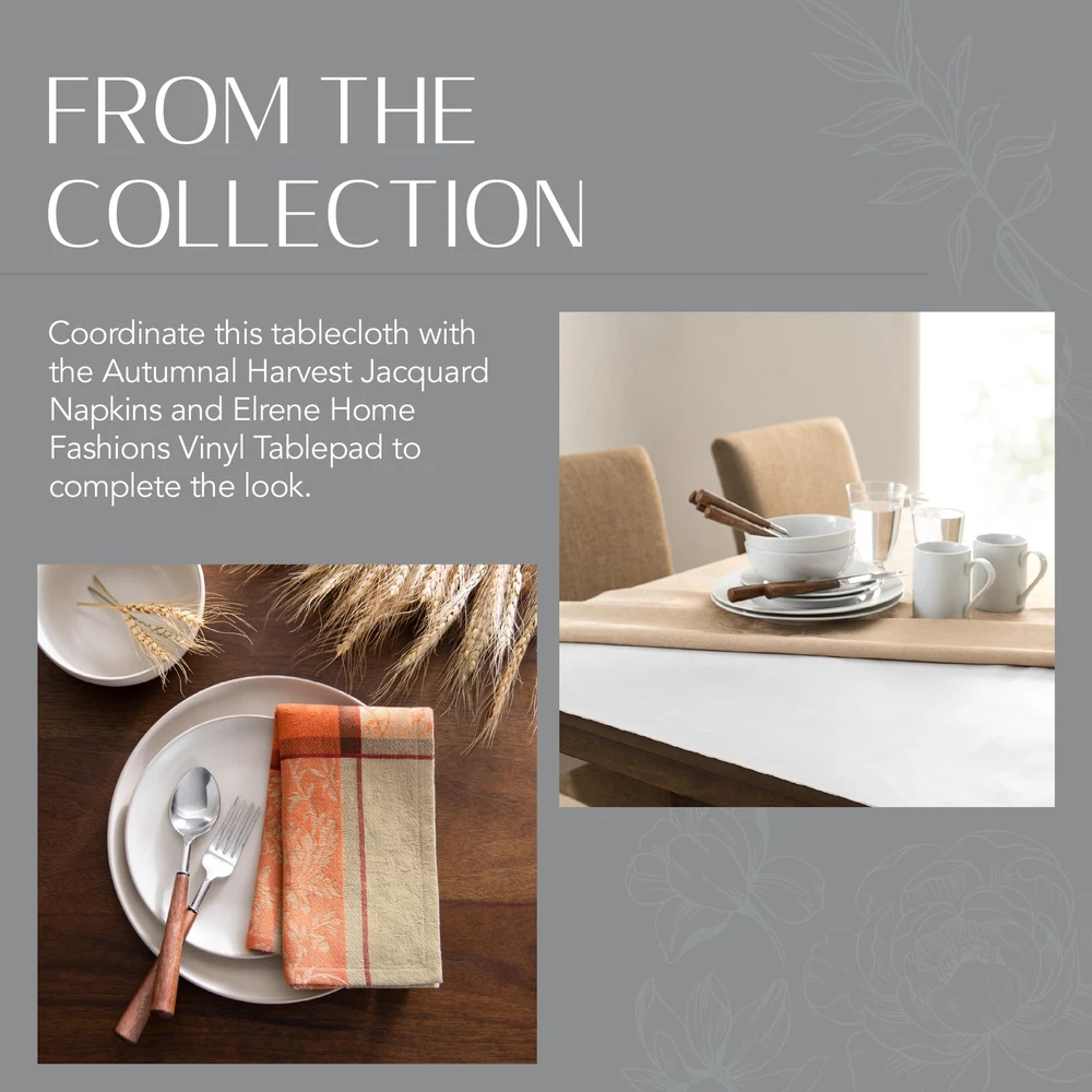 This tablecloth is absolutely stunning—the rich autumnal colors and jacquard weave add such a warm, elegant touch to any table. The 100% cotton feels durable yet soft, and the hemmed edges give it a polished finish. Perfect for Thanksgiving or any fall gathering, it instantly elevates the dining experience. Pairing it with the matching napkins would complete the look beautifully. Highly recommend for anyone wanting to add cozy seasonal charm to their home!