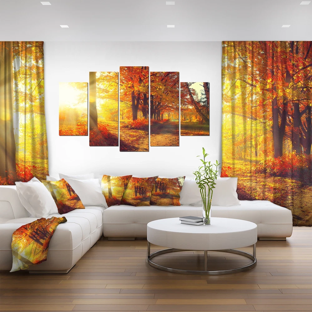 Autumnal Trees in Sunrays" Large Landscape Art Canvas Print Red 60 in. wide x 32