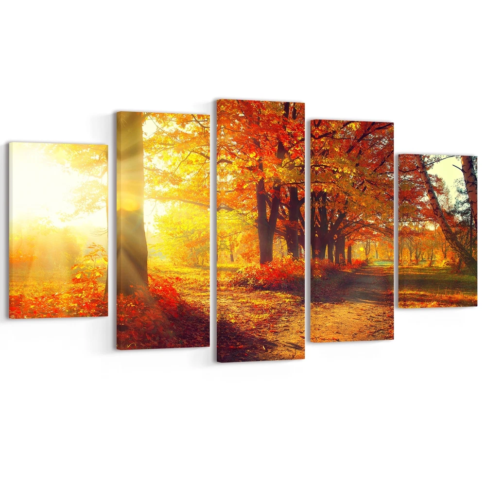 This beautiful Photographic Canvas Art is printed using the highest quality fade resistant ink on canvas. Every one of our fine art giclee canvas prints is printed on premium quality cotton canvas, using the finest quality inks which will not fade over time. Each giclee print is stretched tightly over a 1 inch wood sub frame ensuring the canvas is taught and does not buckle. This canvas art print is gallery-wrapped (the design continues on the sides) , giving it a real art gallery feel. All of our canvas prints are carefully packaged, fragile labeling and sturdy boxes to ensure a safe delivery. Every canvas print arrives ready to hang on the wall, with the hanging kits includedShape: RectangleOrientation: HorizontalSubject: Photography, LandscapesStyle: Contemporary, Fine Art Giclee, Free Shipping Over $49.99* Details Autumnal Trees in Sunrays" Large Landscape Art Canvas Print - Red Product Description: This beautiful Photographic Canvas Art is printed using the highest quality fade resistant ink on canvas. Every one of our fine art giclee canvas prints is printed on premium quality cotton canvas, using the finest quality inks which will not fade over time. Each giclee print is stretched tightly over a 1 inch wood sub frame ensuring the canvas is taught and does not buckle. This canvas art print is gallery-wrapped (the design continues on the sides) , giving it a real art gallery feel. All of our canvas prints are carefully packaged, fragile labeling and sturdy boxes to ensure a safe delivery. Every canvas print arrives ready to hang on the wall, with the hanging kits included ShapeRectangle OrientationHorizontal SubjectPhotography, Landscapes StyleContemporary, Fine Art Giclee, Modern SizeOversized