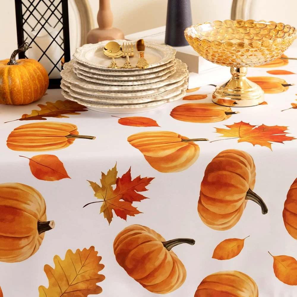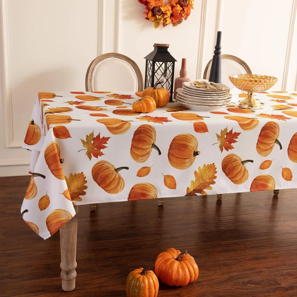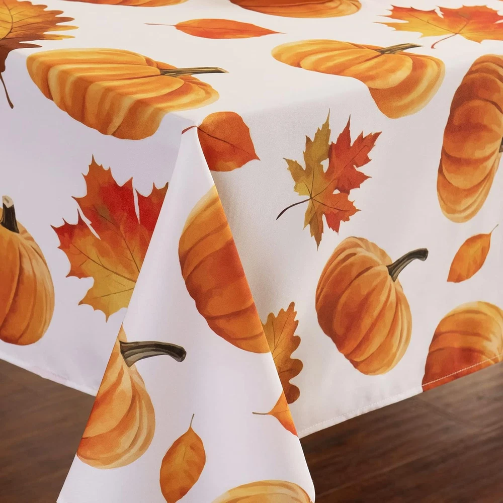 Autumns Thanksgiving Tablecloth,Fall Fabric Table Cloth, Bountiful Pumpkin Maple