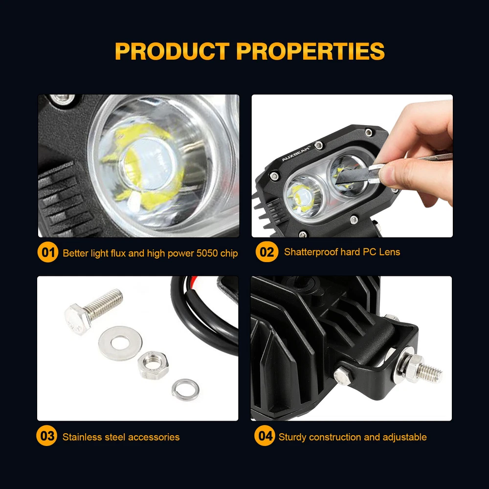 vernavali Welcome Product Description 2Pcs 4 inches highlight 5050 LED work light flood light 2pcs * 30W 3000LM * 2 with Wiring Harness 2 leads Features: -Super cool engineering beam pattern design, nice performance even in foggy days. -Nice fitment, easily replaces old dull filament light. - Fast and effectively cool down the heat. -Easy installation, just plug & play. -Faster on/off response time and vibration resistant. -Environmental-friendly: energy saving, no UV and IR radiation, shock-proof and anti-corrosion. Specification: Power/set: 60W(30W*2) Quantity: 2Pcs Lumens / Pair: 3000LM * 2 Degrees:40° Illumination Distance:400-600M Housing Material: aluminium die casting Lens material: PCB Lamp beads model: 5050 Beam pattern: Flood light Light color: White Color temperature: 6500K Fit Model: Universal Life time: 30,000 hours Housing color: Black Waterproof rate: IP67 Light Type: work light/pod light/driving light Shape: Square Working voltage: 9-36V(wiring harness is 12V) Size: 4 inches Packing included: 2 X LED work light 1 X wiring harness 2 leads Note: 1. Please allow 1-3cm (0.4-1.18") difference due to manual measurement and slight color variation for different display setting. 2. Due to the light and screen difference, the item's color may be slightly different from the pictures. Please understand. Product Display Payment We accept PayPal via eBay Secure Check-Out only. Payment is expected within 7 days of auction close. Unpaid Items will be forfeited per eBay . Immediate payment needs to be processed for items with Add to Cart option so that any promotional discounts can be applied to your order immediately. Shipping Notice: 1 .We do everything we can to ship your orders out as soon as possible. 2. Shipping and Handling: We process orders within one business day after the payment was clear. ---For domestic economic shipping, It normally takes 2-8 days for delivery. We may ship your order(s) from different warehouses for expedited delivery as we utilize alternative warehouses across the Continental United States.You may upgrade to UPS 3-day Selected which delivery time is typically 1-3 business days. Please be noted that, this service is more recommended for Monday-Thursday orders. Orders on Friday may be processed on following Monday by UPS, according to UPS's policy. ---For International Orders, items may be shipped from our warehouse in south China. Both are the same products and same warranty. Duties and taxes may apply. Please check with your country's custom and eBay policy for more information. Returns Our 30-day Satisfaction Guarantee assures our customers that they will receive all orders promptly and exactly as described. In addition, it allows customers to return new and unused products in their original factory condition for any reason within 30 days from the date of purchase. 1. All returns must be pre-approved by Rbigdoggy and have a return merchandise authorization(RMA) number. Unauthorized returns will not be accepted. 2. Buyers are responsible for appropriate packing, returning shipping cost, insurance and returning the item in "new" condition. Used items will not be accepted for return. 3. We will replace the returning item with an identical item, issue a full store credit or a full refund. The sole and exclusive maximum liability to Rbigdoggy arising from any product sold on Rbigdoggy ebay account shall be the price of the product ordered. Feedback 1. We appreciate your business and strived to improve our customer service and our commitment to quality. 2. We will leave a positive feedback immediately after payment is received. We appreciate a positive feedback as much as you do. 3. If for some reason there is any issue with the purchase, please contact us prior to leaving feedback, and we will be glad to work with you to have it resolved. Thank you for visiting my store!