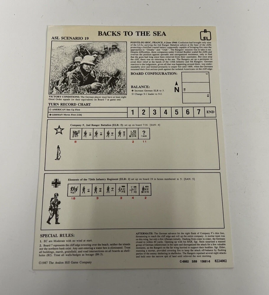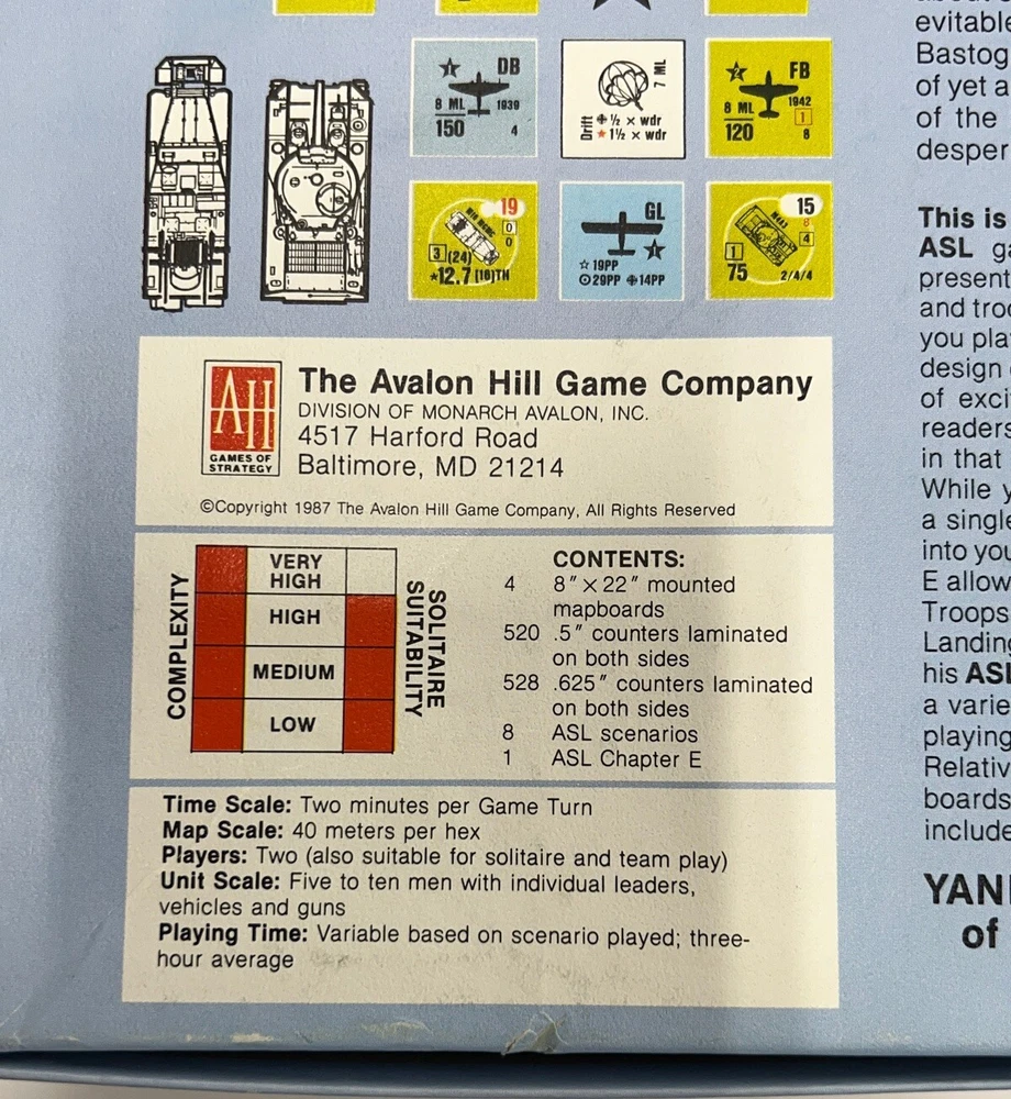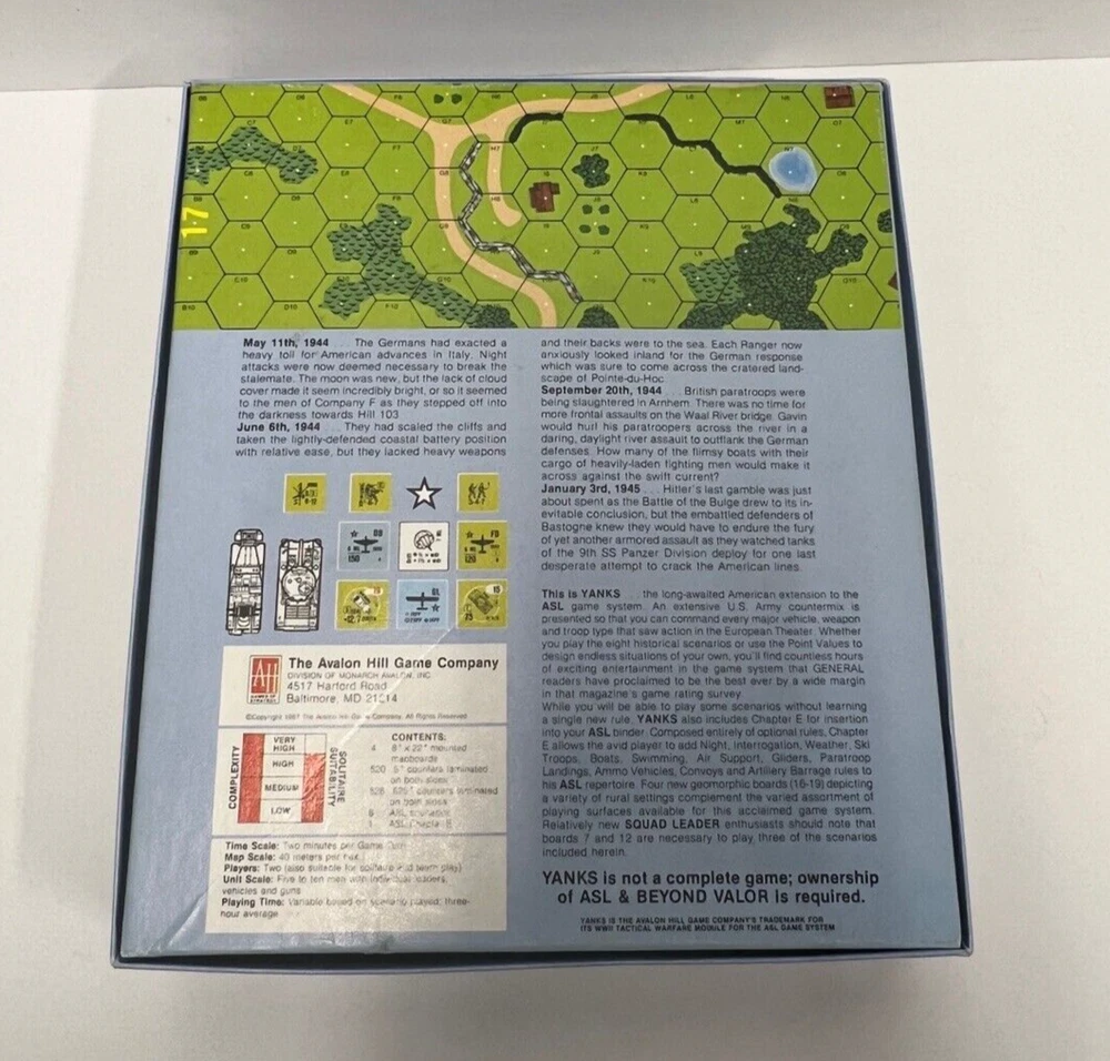 Avalon Hills Yanks ASL Module 3 Strategy Board Game - Unpunched 1987
