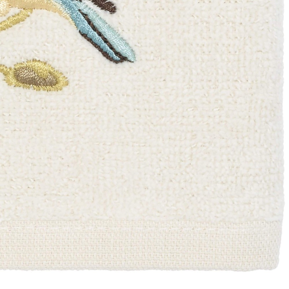 The Avanti Gilded Birds Decorative Washcloth is embroidered with a blue bird with orange, yellow and brown accents, on a branch with leaves. 13" x 13" 100% cotton (excl of embellishment) ivory velour hemmed towel. Coordinating shower curtain, towels, rug and accessories available. Free Shipping Over $49.99* Details Avanti Linens Gilded Birds Washcloth Product Description: The Avanti Gilded Birds Decorative Washcloth is embroidered with a blue bird with orange, yellow and brown accents, on a branch with leaves. 13" x 13" 100% cotton (excl of embellishment) ivory velour hemmed towel. Coordinating shower curtain, towels, rug and accessories available.