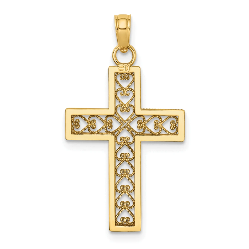 Avariah 10k Yellow Gold Diamond Cut Filigree Cross Pendant - 27.4mm