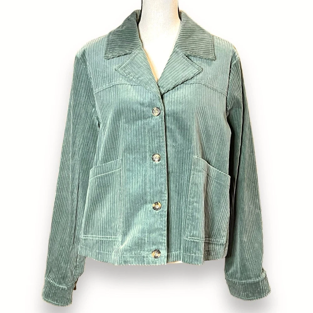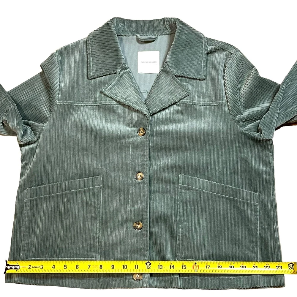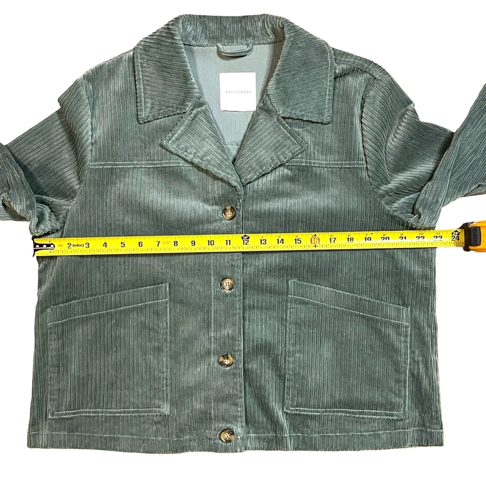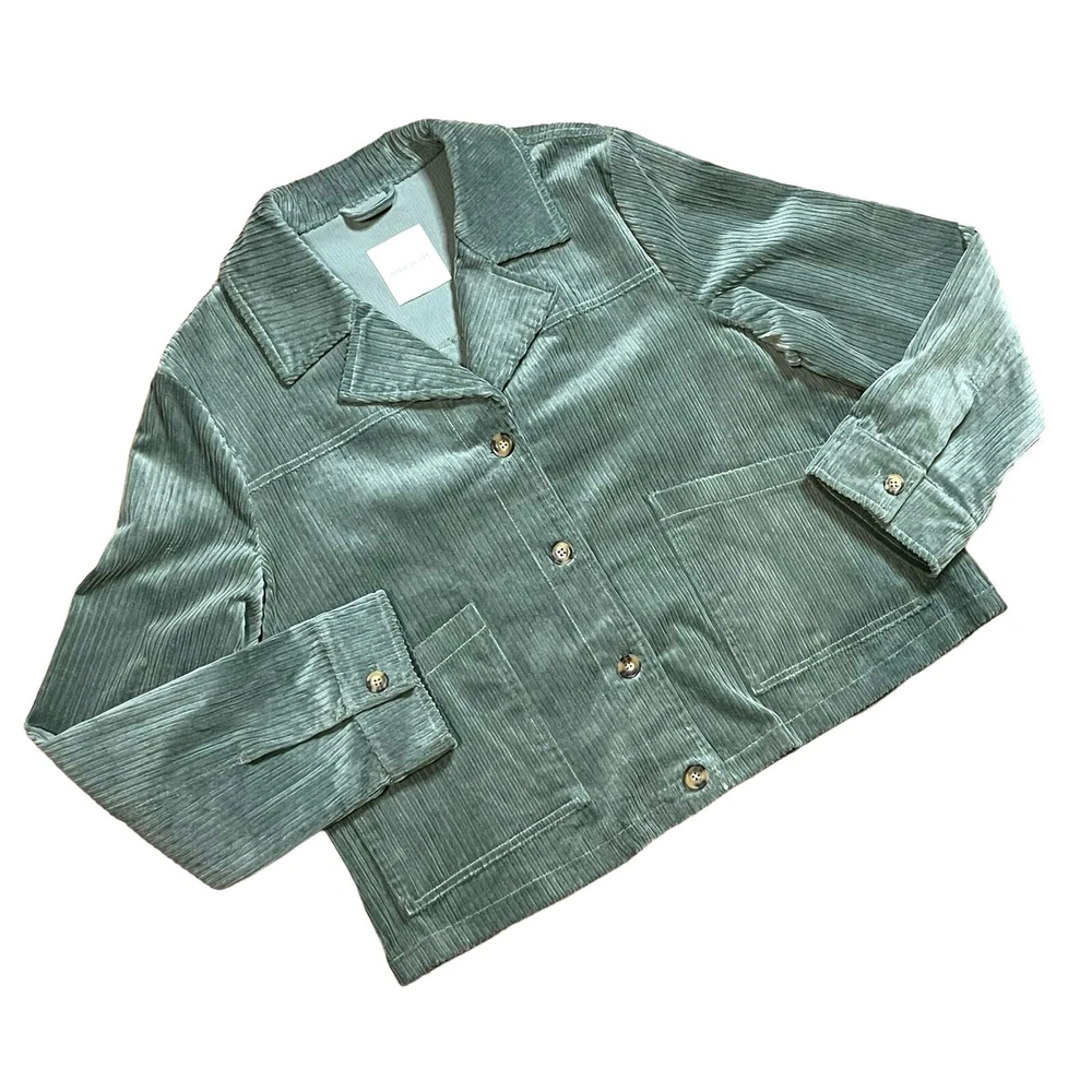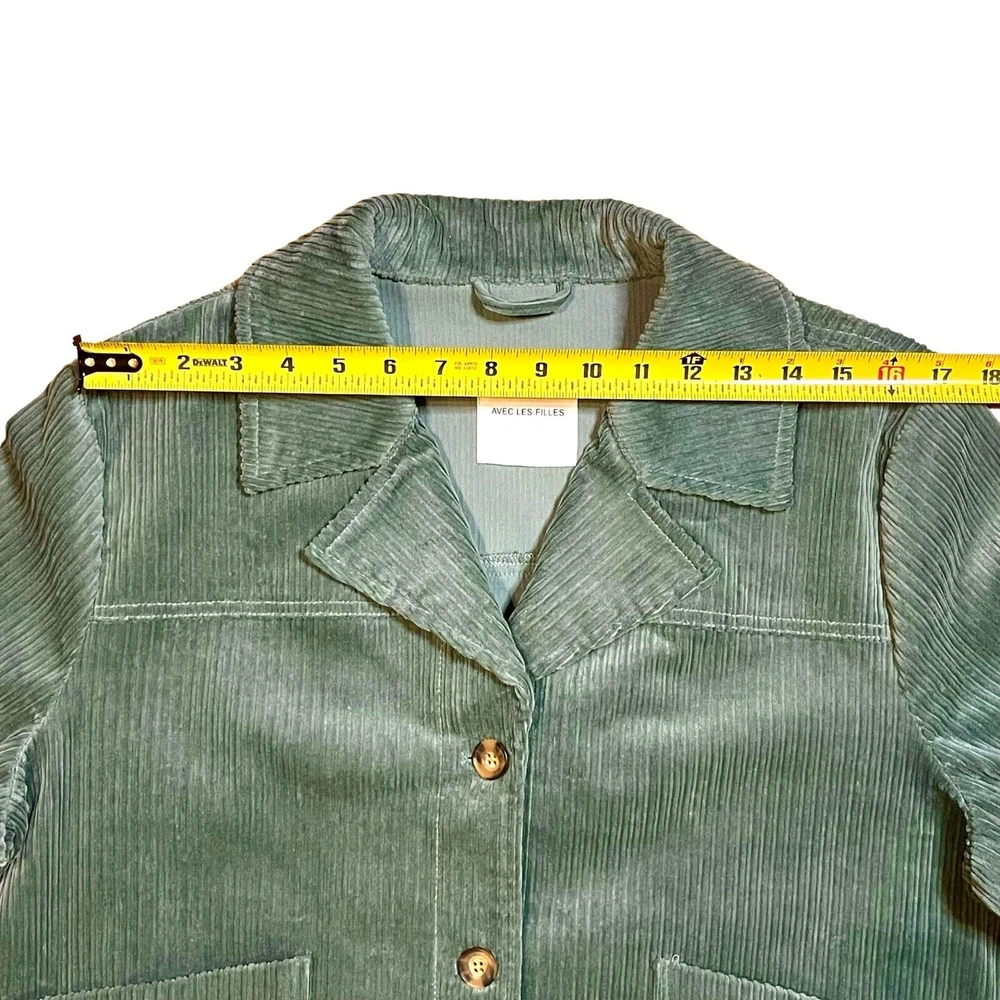Stay Stylish and Comfy with Avec Les Filles Tegan Corduroy Shirt Jacket. Made from a blend of cotton and spandex fabric, this Extra Large boxy relaxed fit jacket offers both comfort and style. The oversized fit and the pretty pastel sage green color make it a versatile piece that can be dressed up or down for any occasion. - Soft and thick corduroy fabric - Oversized boxy fit for comfort - Versatile sage green color - Perfect for layering in fall/winter - Easy to pair with any outfit -In excellent gently used preowned condition. -Size tag is not present, but measurements were confirmed to be accurate compared to another with the XL size tag. Please see photos to review measurements to ensure proper fit. B3
