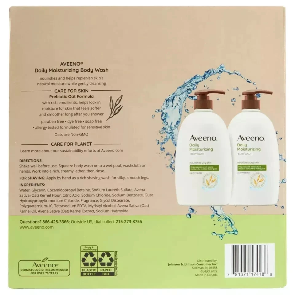 Aveeno Daily Moisturizing Body Wash, 33 fl. oz., 2 pk. NEW Description : Aveeno Daily Moisturizing Body Wash uses a unique blend of emollients and natural oils along with colloidal oatmeal to clean and replenish skin. Aveeno Moisturizing Body Wash is gentle enough for sensitive skin and can be used every day. This body wash is dermatologist recommended and leaves you with healthy, smoother looking skin. Features : Soap-free formula Dye-free and hypoallergenic Dermatologist recommended 2-pack, 33 fl. oz. bottles We try our very best to make sure every customer is completely satisfied. If there's a problem, message us! We're happy to help Visit Our store to get great Discounts ,looking forward for your positive response !