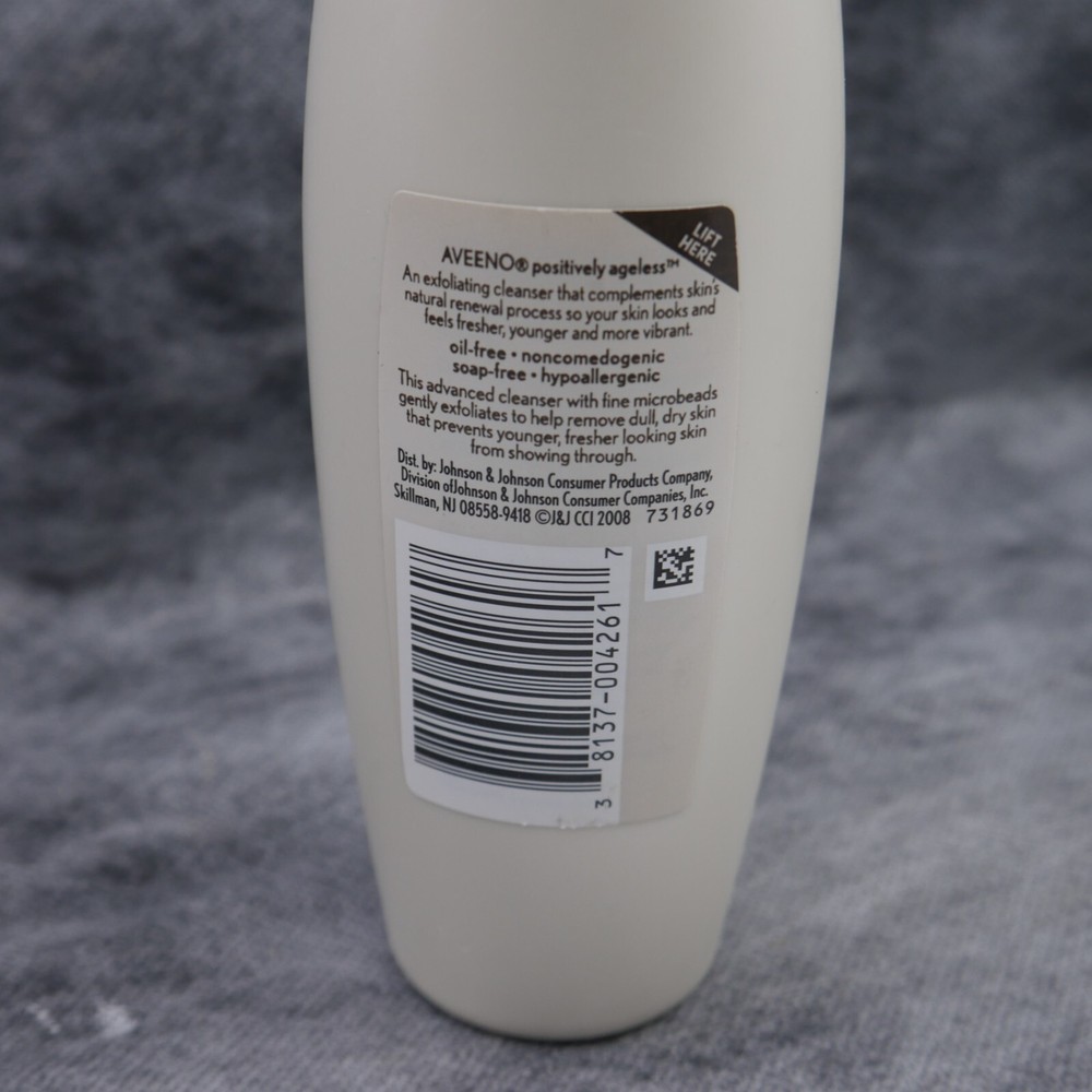 1 Aveeno Active Naturals Positively Ageless Daily Exfoliating Cleanser 5.0 Fl Oz Condition is new but item may show very light shelfwear Here at Finders' Emporium, we specialize in discontinued & hard to find items that we source from various places- sometimes these are shelf pulls and will show light shelf wear (scratches & dents), discolorations, sticker residue, etc. We try our best to note when this is the case- but please view all pictures and ask any questions you may have about the cosmetic condition of the item. Finders' Emporium can sometimes offer a small discount for larger purchases so please contact us if you are interested in purchasing more than one listing. Items over expiration are sold as "collectible" and are not intended for use or consumption. Per our policies, a purchase over $200 is required to be signed for at delivery. We appreciate your business!