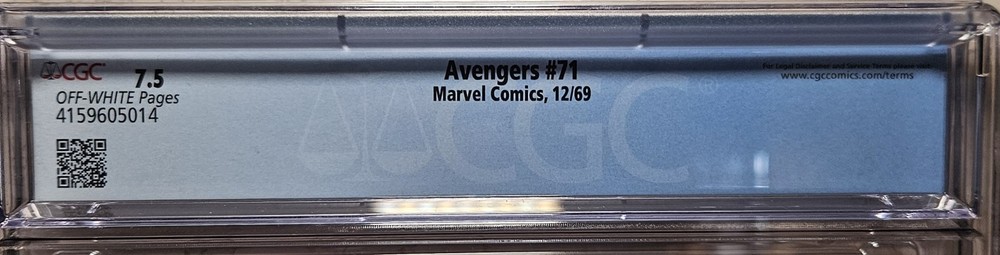 There is a minor scratch on the front top, right, barely noticeable, but I have to disclose... This is a rare and valuable Avengers #71 CGC 7.5 comic book from the Silver Age of comics. It features the first appearance of the Invaders, including Black Knight, and is a key issue for any Marvel (MCU) or Disney universe collector. The comic book is in English and intended for a general audience. The story title is Spider-Man and the issue number is 71. The comic book is a single issue, professionally graded by the Certified Guaranty Company (CGC), and comes with a certification. The superhero team featured is the Avengers, and the characters include Thor, Iron Man, Captain America, Vision, Scarlet Witch, and Black Knight. The comic book has a vintage look and feel, with a style of color, and is a great addition to any collector's list. #LRW