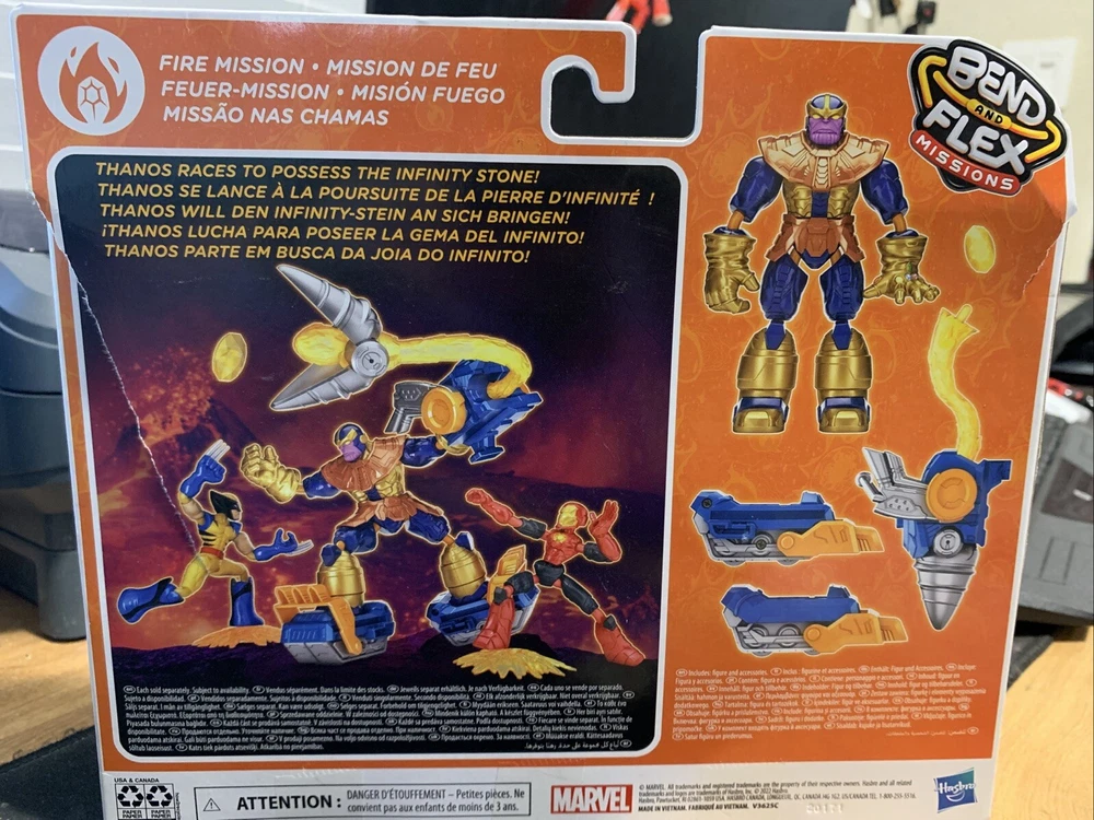 This Avengers Bend Flex Missions Thanos Fire Mission Figure is a must-have for any fan of the Marvel franchise. With intricate details and a 6" height, this action figure is perfect for display or play. It features the popular character Thanos, from Marvel's The Avengers, and comes in its original packaging, unopened and ready for display. The figure is by Hasbro and is part of the Action Figures category, specifically the Toys & Hobbies and Action Figures & Accessories subcategories. It is designed for children aged 5 and above and is perfect for imaginative play. The figure is based on the TV, Movie & Video Games theme and the Avengers franchise. Box has a little wear and tear as seen in pictures but the box has never been opened.