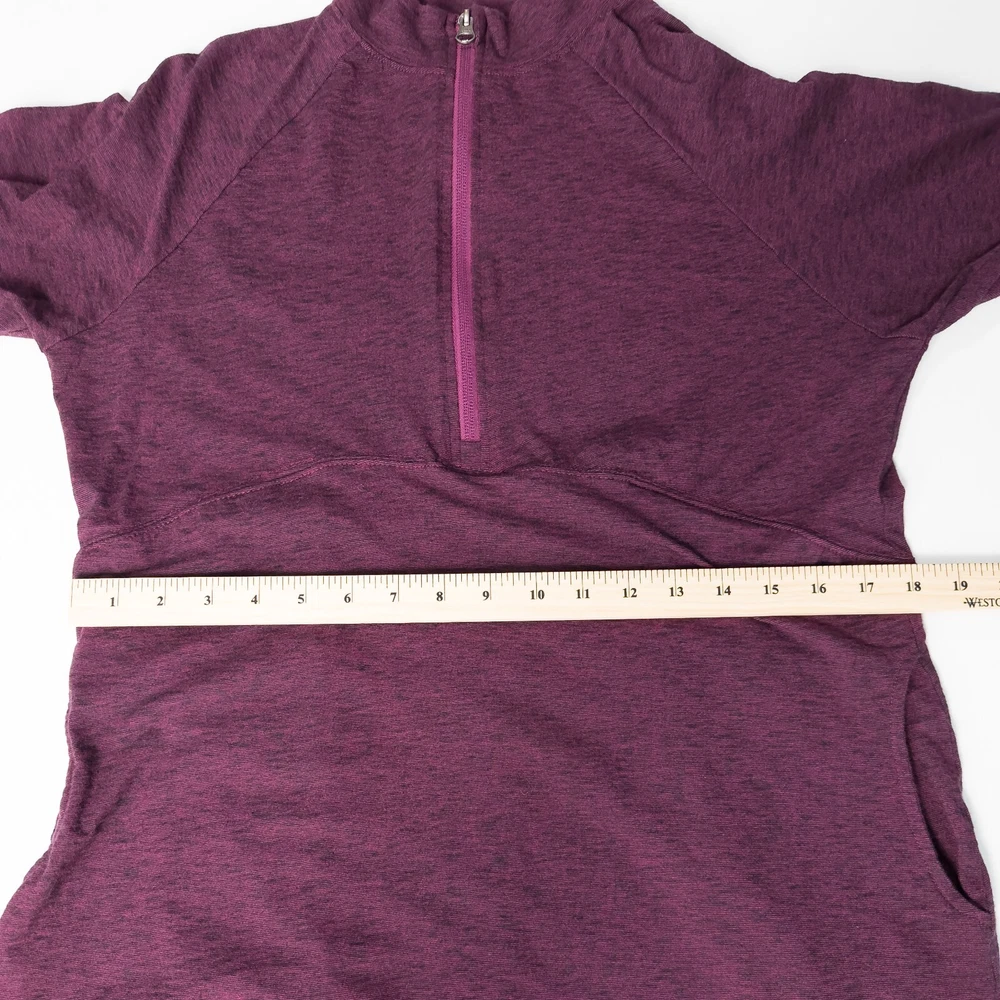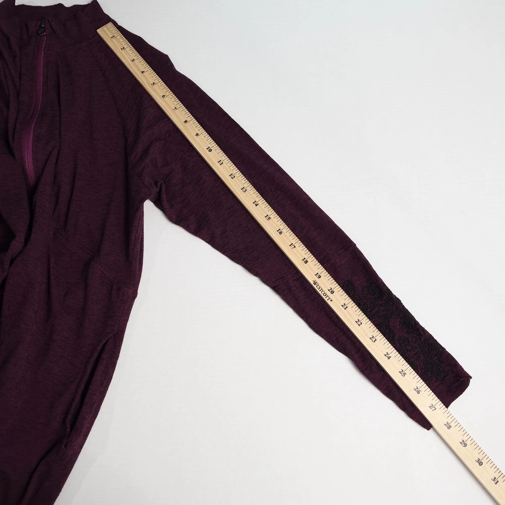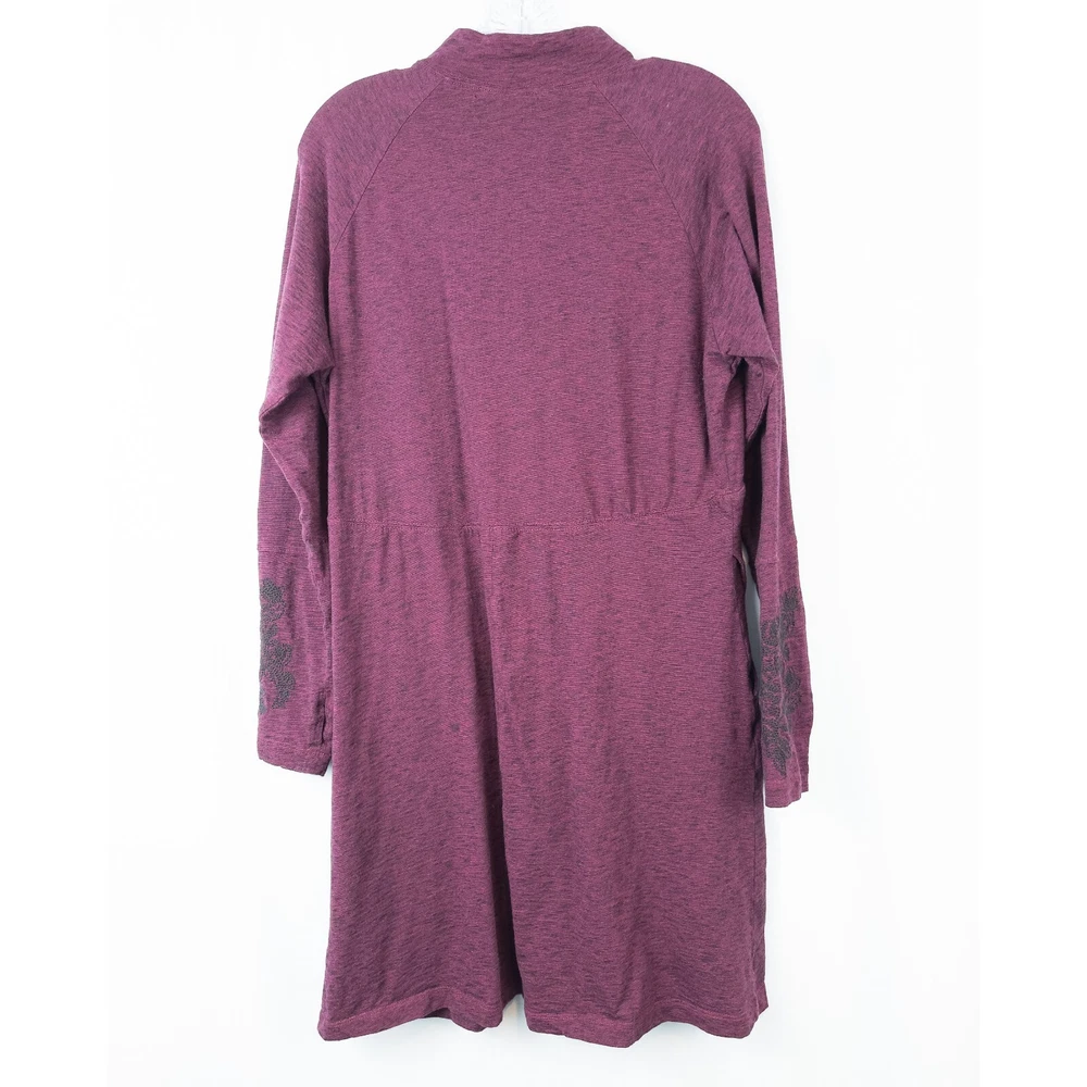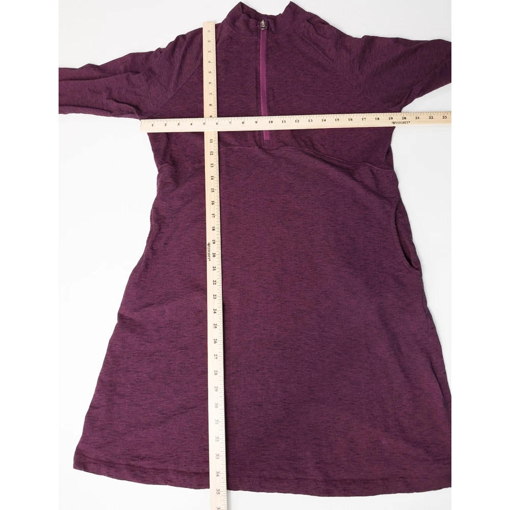 Aventura Clothing Addison Dress * Condition: Good pre-owned condition. There are a few small white spots on the front bottom left and back right shoulder; and a small hole in the upper back. Please see photos. * Size: Large * All measurements are approximate and taken lying flat. Please see photos as well. * Chest: 20” pit to pit * Length: 35” from shoulder to hem * Color: Magenta Purple * Material: 48% Organic Cotton, 47% Tencel Lyocell, 5% Spandex * Stretchy slub jersey knit fabric * 1/4 zip mock neck collar * Side seam integrated pockets * Raglan sleeves with embroidery detail * Thumb holes * Style: P83309 * Machine Washable All of my items are stored in a smoke-free, dog-friendly home.