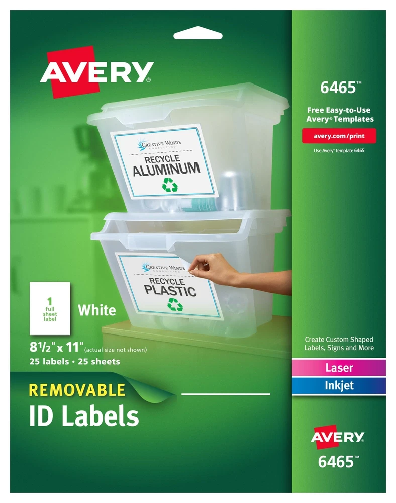 Product Description Create and print your own labels. Labels stick, stay and remove easily. From the Manufacturer ID labels stick, stay and remove cleanly to make changes and revisions. The rectangular shape makes them ideal for binders, diskettes, file folders, cassettes, drawers, containers, boxes, shelves and more. Labels adhere to smooth surfaces, including paper, cardboard, plastic, wood, glass and metal. Labels are compatible with laser and inkjet printers. Avery offers many easy-to-use templates for Microsoft and many other popular software programs. Perfect for addressing identifying updating organizing and price marking Self-adhesive labels stick stay and remove cleanly for easy updates Adheres to smooth surfaces including paper cardboard plastic wood glass and metal