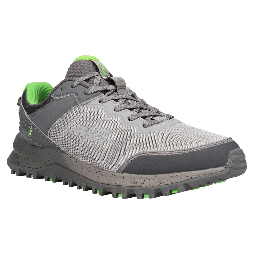 Avi-Ultra Trail Running Shoes Product Details Breathable Mesh upper with Synthetic overlay Lace up closure Ethylene-vinyl acetate midsole Lugged rubber soleplate provides extra traction The Avi-Ultra is a perfect option for light trail running or exploring the outdoors. The synthetic and mesh upper will give you support and breathability. The full length Ethylene-vinyl acetate midsole will provide cushioning while the lugged rubber soleplate provides extra traction. Additional Details Color: Grey Occasion: Casual Gender: Mens Age: Adult Brand: Avia