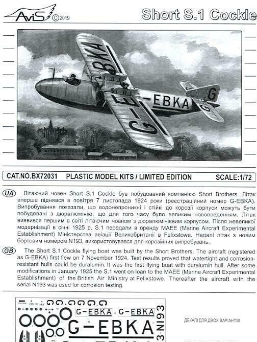 Avis 72031 Plastic Model Kit Aircraft Scale 1:72 Short S.1 Cockle Plastic model kit High-quality details. Scale: 1:72 High-quality details. Manufacturer: AVIS (Ukraine) Country/Region of Manufacture: Ukraine Composition: Plastic Model Kit Material: Plastic Paint: Unpainted, Unassembled, Kit do not contain paints and glue. Condition: New in Box Features: Kit Airplane scale model 1/72 Scale model kit Short S.1 Cockle (Avis No.72031) Length, mm: 104 This set includes: sprues with parts decal (sticker) scheme for painting model detailed instructions in English Glue and paints are not included Quality set, simple assembly. Suitable for experienced modelers, as well as for beginners. Due to the use of modern production technologies, all the details of the model fit perfectly, thanks to this, you can get an excellent result with minimal effort. ----------- This is a plastic model kit. Assembly and painting is required. Paint and glue is NOT included. Item Type: Scale model kit Commodity Attribute: Assembly The model is a plastic assembly model and needs to be assembled and painted by yourself You need an extra purchase of the glue, paint and so on!