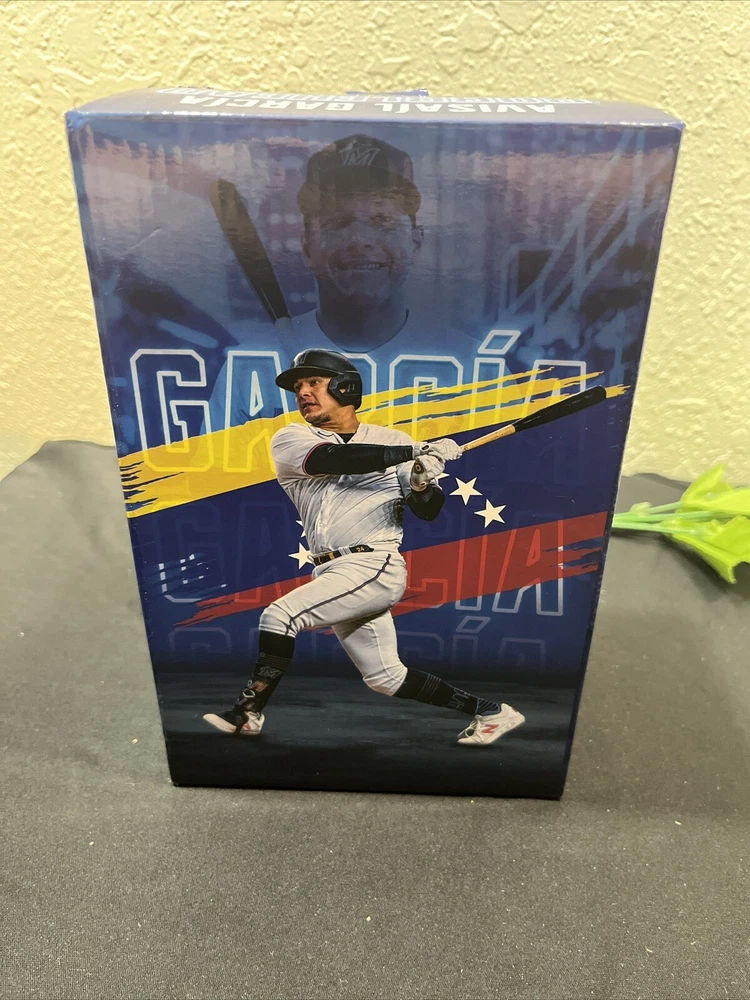 This exclusive 7" Avisail Garcia Miami Marlins Bobblehead is a must-have for any baseball fan. Representing the Major League (MLB), this product is a perfect addition to your collection. Made in Venezuela, this Bobblehead is a unique piece that showcases the player's talent and passion for the sport. With its detailed design and high-quality materials, this Bobblehead is a great investment for any collector. It's perfect for displaying in your home or office, and is sure to be a conversation starter. Don't miss out on this opportunity to own a piece of baseball history. Pre-owned collectible in very good condition and original box and packaging