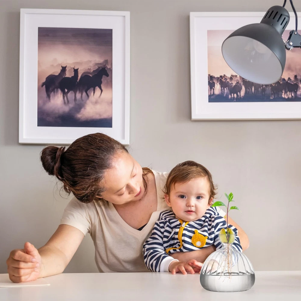 Avocado Seed Sprout Starter Vase Planter Pot, Avocado Tree Growing Vase Glass Container, Clear Striped Glass Propagation Jars for Hydroponics Plants Home Garden Office Decoration avocado tree vase with simple style is well designed with narrow opening and wide bottom, making it suitable for holding avocado seeds and stable enough to sit on the desktop. Our seed starter vase is made of glass, they are crystal clear in appearance, helping them give off beautiful sparkles and shines under the sun. Avocado seed growing vase serves as a perfect gift for people who are interested in growing plants. With this glass vase, they can enjoy the growing process and the beauty of nature. Product Dimension: You will receive one clear avocado glass vase which measures 2.0" in upper diameter, 5.9" in bottom diameter and 5.9" in height. It is suitable for planting avocado seeds and other hydroponics plants. Cute Design: Our striped glass vase are deigned with a wide and spherical body as well as a narrow neck, which can hold avocado seeds perfectly, leave plenty of space for them to sprout, and stable enough to avoid toppling over. Practical Material: Being made from glass, seed starter vase planter pot is clear in appearance, making it sparkling and shining especially during the day when the sun hits the glass just right. This material is also easy for observation. Easy to Use: Our seed sprout glass container is easy for you to plant avocado seeds. Just sit one seed into the vase mouth, fill water in it until the seed rest above the liquid, and wait for the growing process. Meaningful Gift: avocado tree growing vase is a great gift for people who loves plants. With the sinuous shape of the vase, the growing process will be magnified, and you will surely experience the joy of nature.