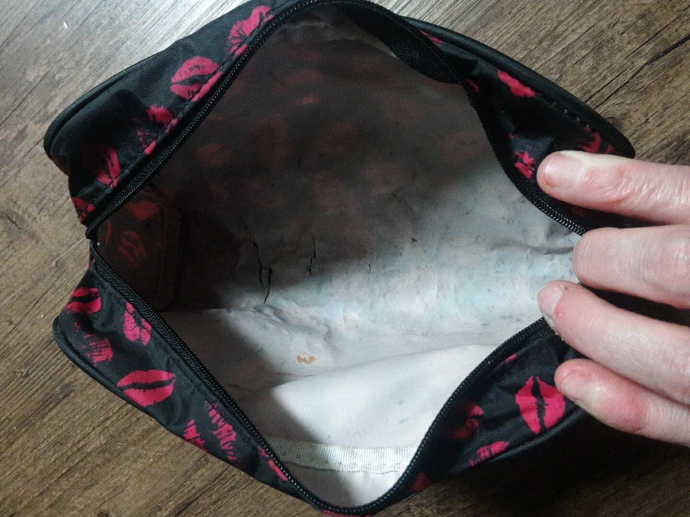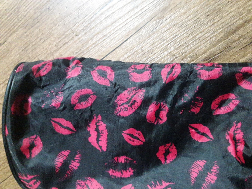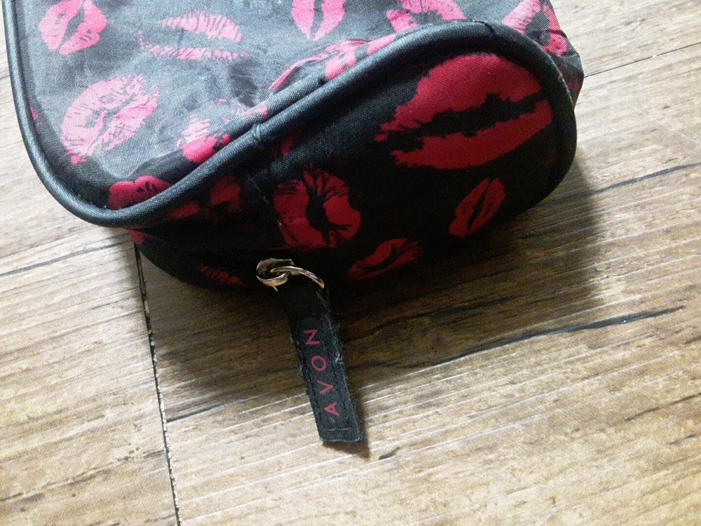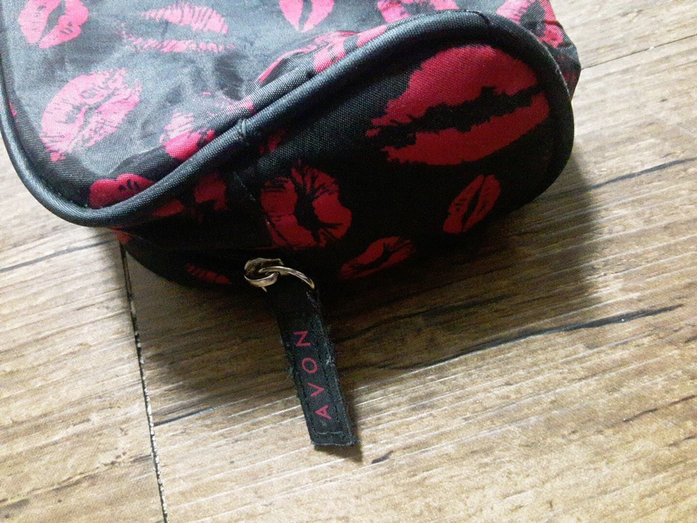 Vintage Avon Makeup bag with lip kisses and.. pre-owned and used. in good condition and.. clean from healthy no smoking no pet house and.. accept any offer.. alittle worn in corner however.. great for make up style and.. fashion!