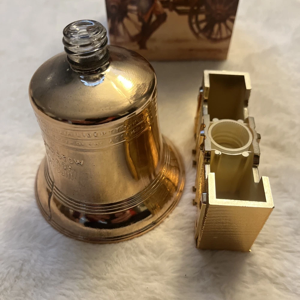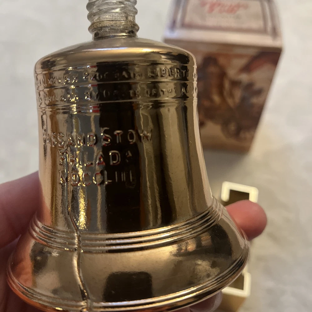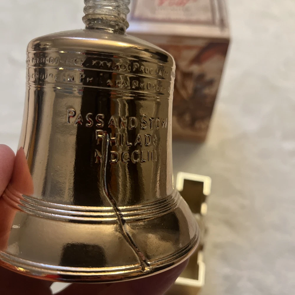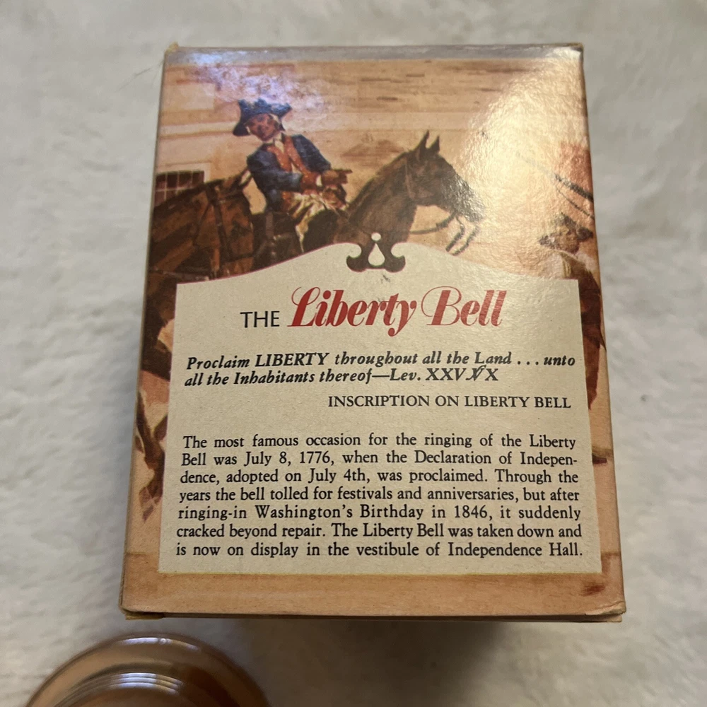 The Avon Liberty Bell Decanter from 1971 is a vintage collectible item that contains Oland After Shave in a 5 oz bottle. It comes in its original box, making it a rare find in new old stock (NOS) condition. The decanter features a patriotic design with a multicolor Liberty Bell motif, reflecting the style of the 1970s. Made of glass and plastic, this unique piece is a great addition to any collection of decorative bottles or Avon memorabilia.