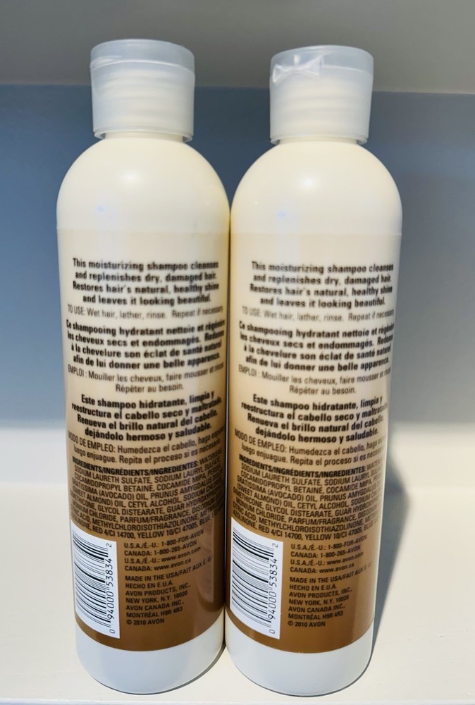 The product is a set of two Avon Naturals Moisturizing Shampoo bottles, each containing 8.4 fl oz of shampoo. The shampoo is in the almond scent and is part of the Avon Naturals product line. It is designed to provide moisturizing benefits to the hair while cleaning and nourishing it. With a brand known for quality products, this shampoo is a great choice for those looking for a gentle and effective hair care option.