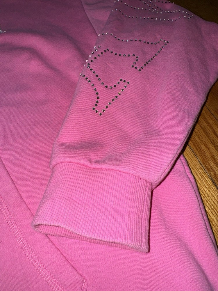 Awake NY Hot Pink Rhinestone Zip Up Hoodie with Sparkle Detail