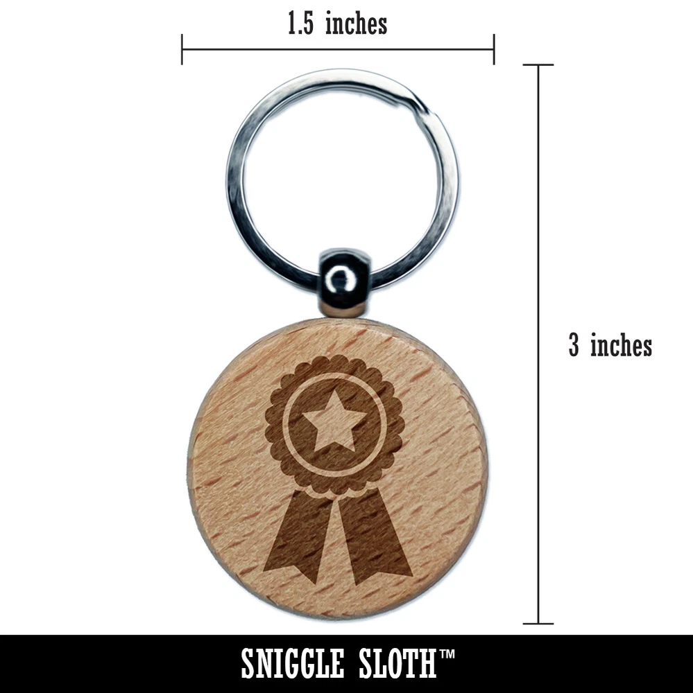Award Prize Ribbon Engraved Wood Round Keychain Tag Charm