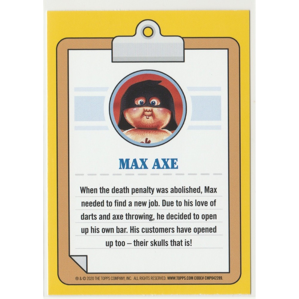 Axel Throws #16b Garbage Pail Kids GPK 2020 35th Anniversary Series Axel Throws #16b Topps Garbage Pail Kids GPK 2020 35th Anniversary Series Subset - All Grown Up: Original Characters As Adults Artist - David Gross trading card sticker personal stock photos centering of card may vary compared to listed images