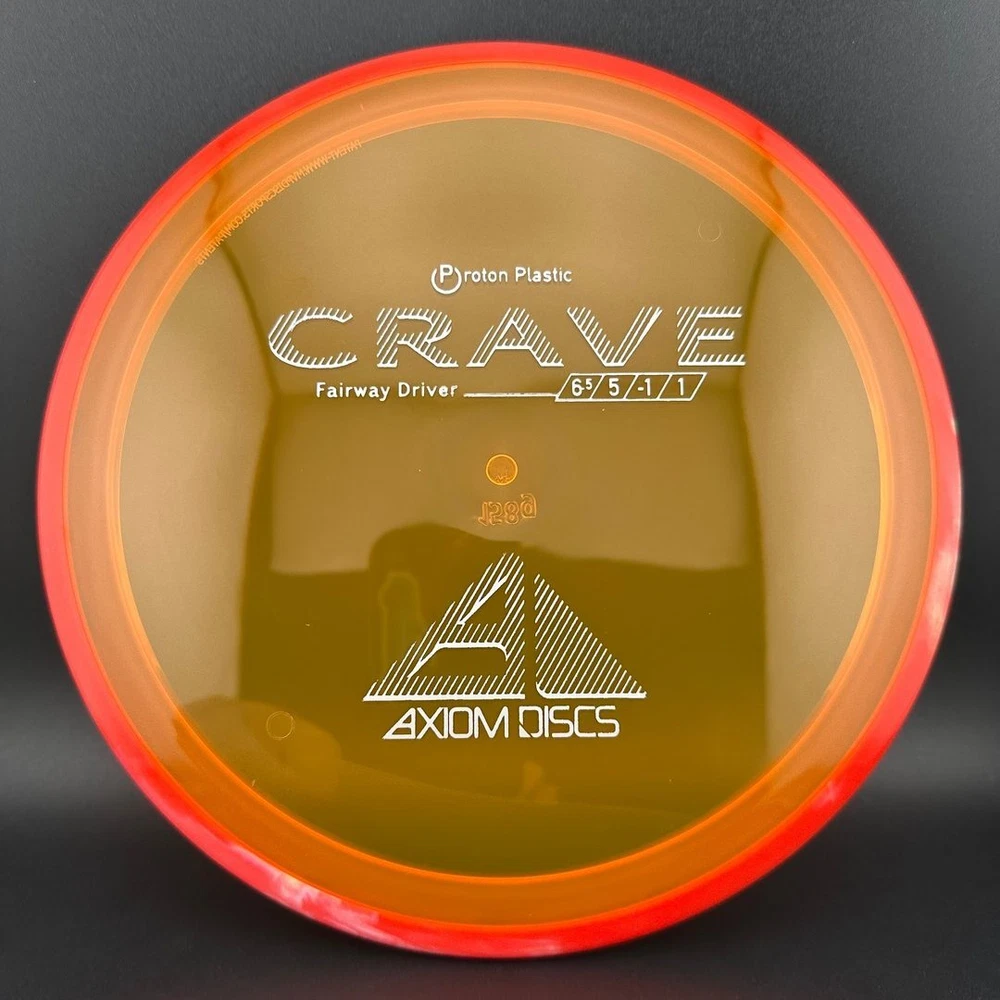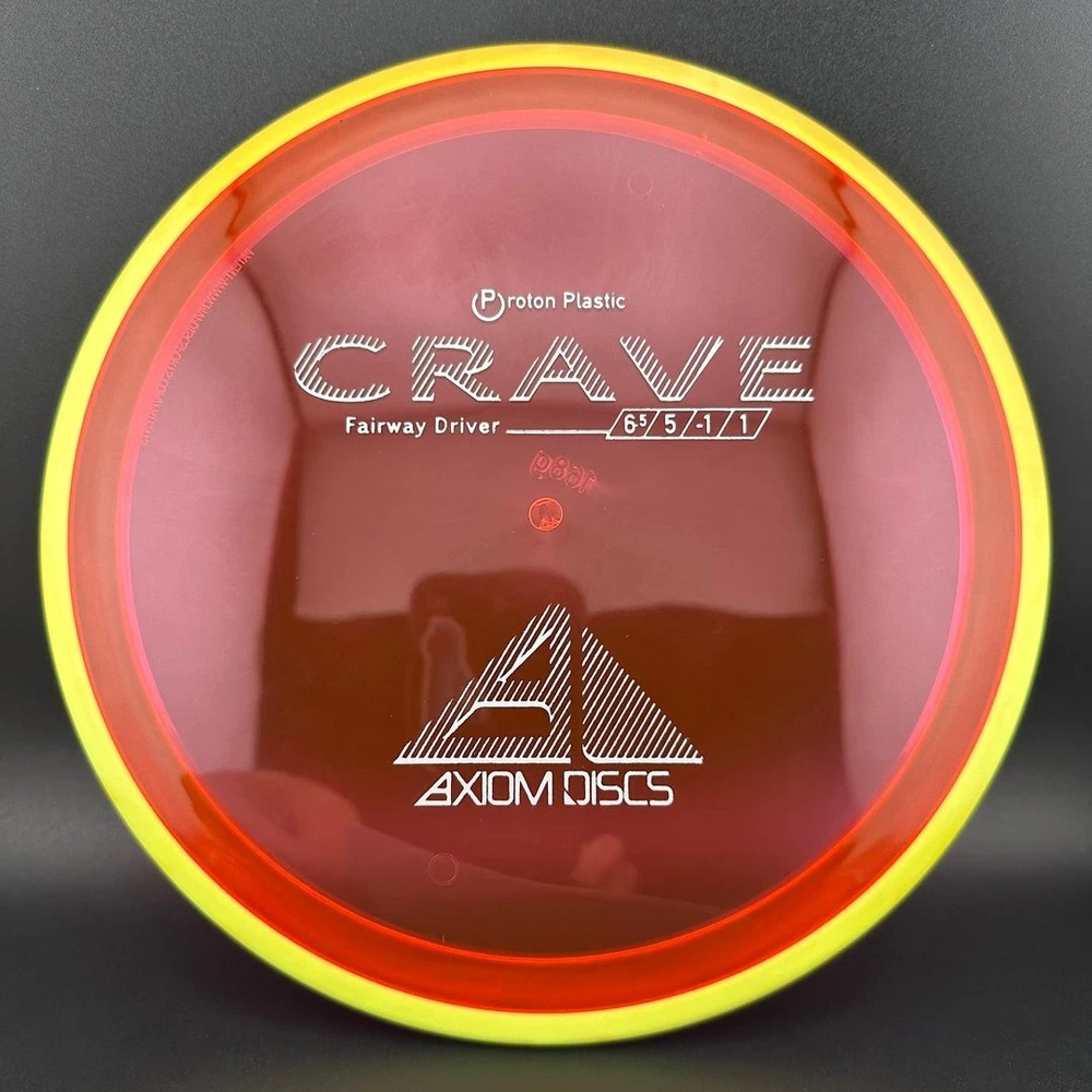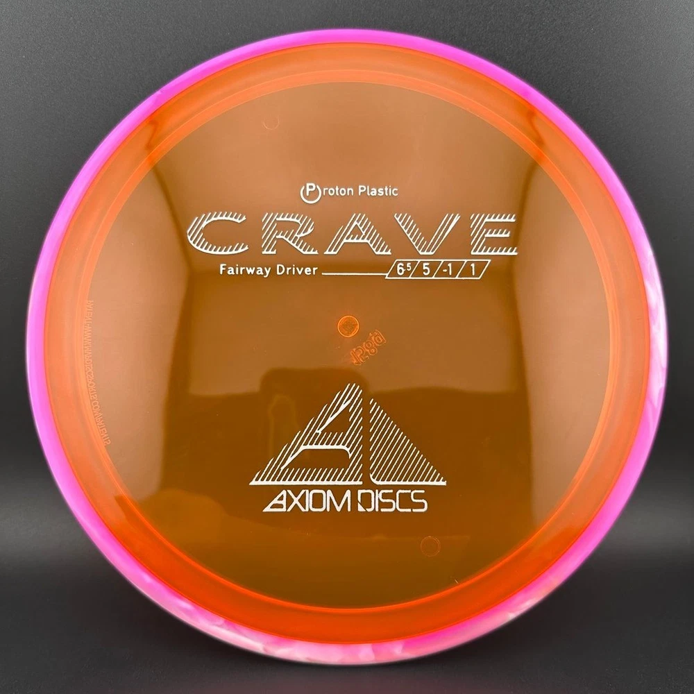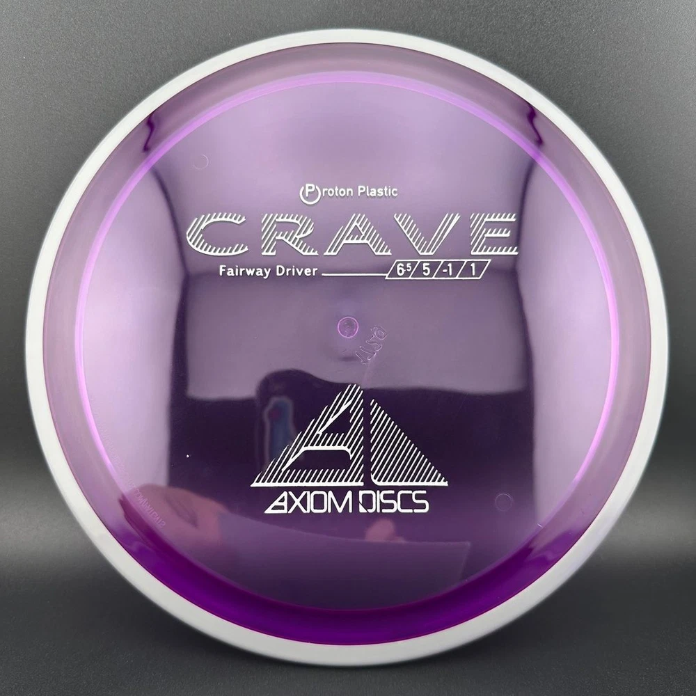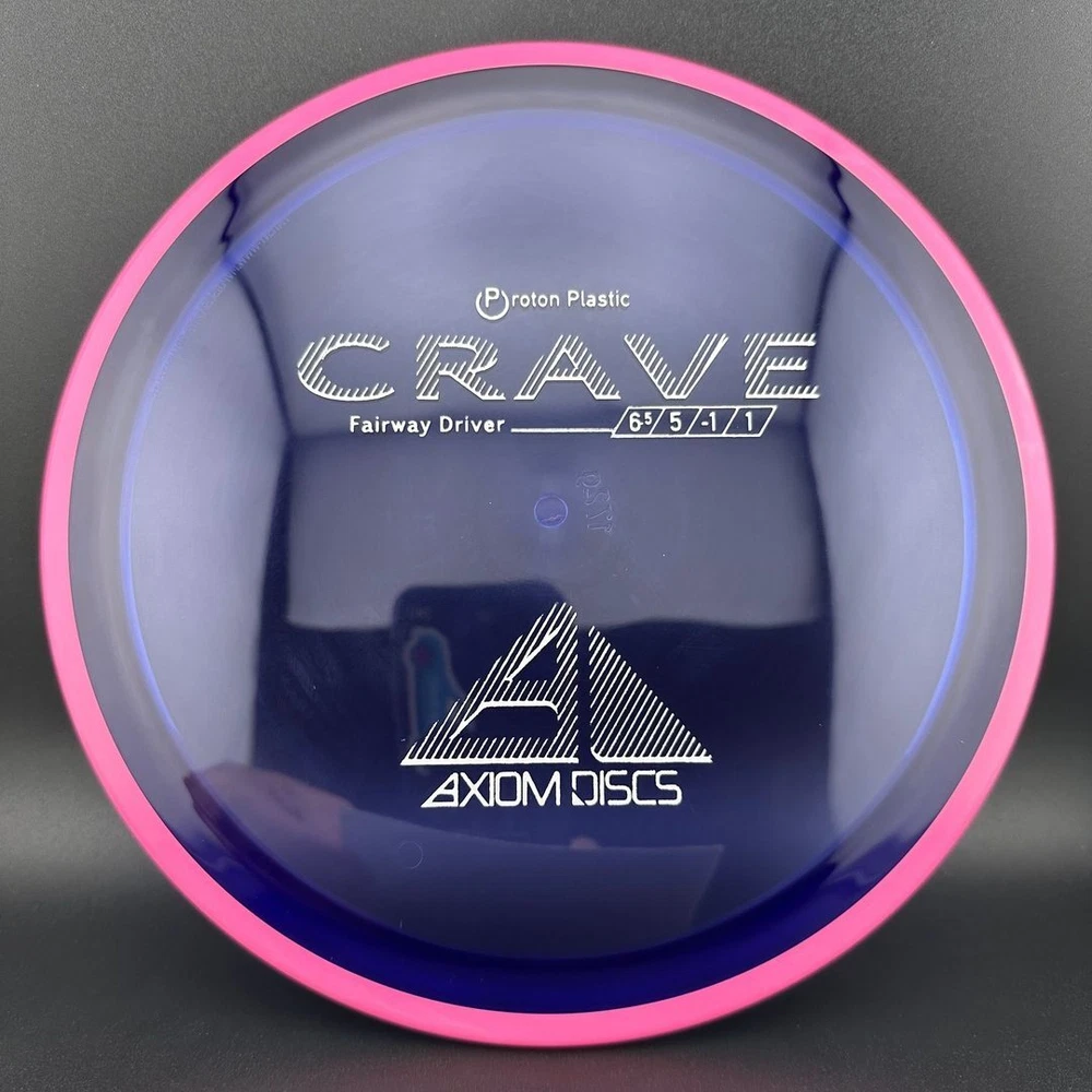 6.5/5/-1/1 The Crave is the first driver in the Axiom Line. This moderate speed fairway driver is described as a seasoned MVP Servo. The Crave is one of the straightest flying fairway drivers in the market. It totes a slower speed, but don't let it fool you, as it goes far. It provides a torque resistant, but straight flight suitable for backhands or forehands. Most MVP made discs are relatively flat, and the Crave is no exception. Proton is a beautiful and durable blend in the MVP line. Like all MVP discs, Proton has two seperate plastics; a transparent flight plate in vivid colors, and a black solid outer rim.