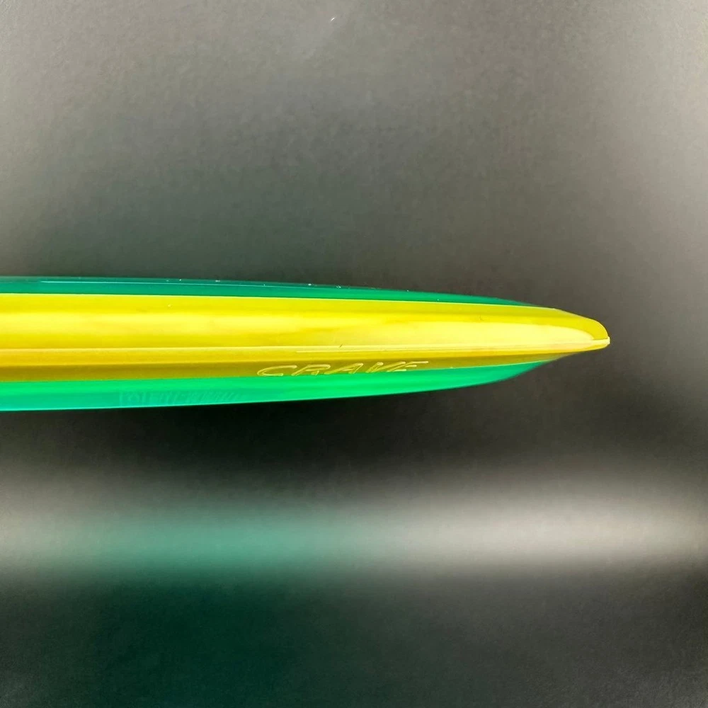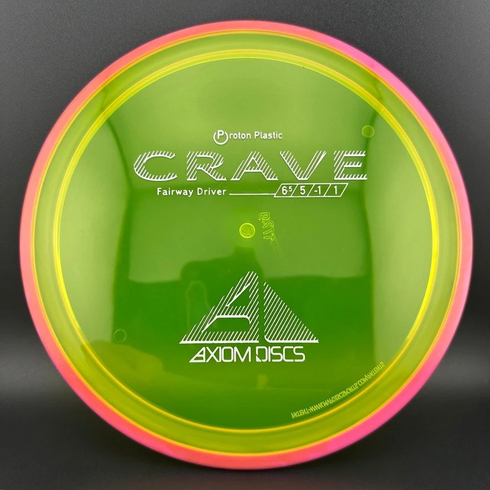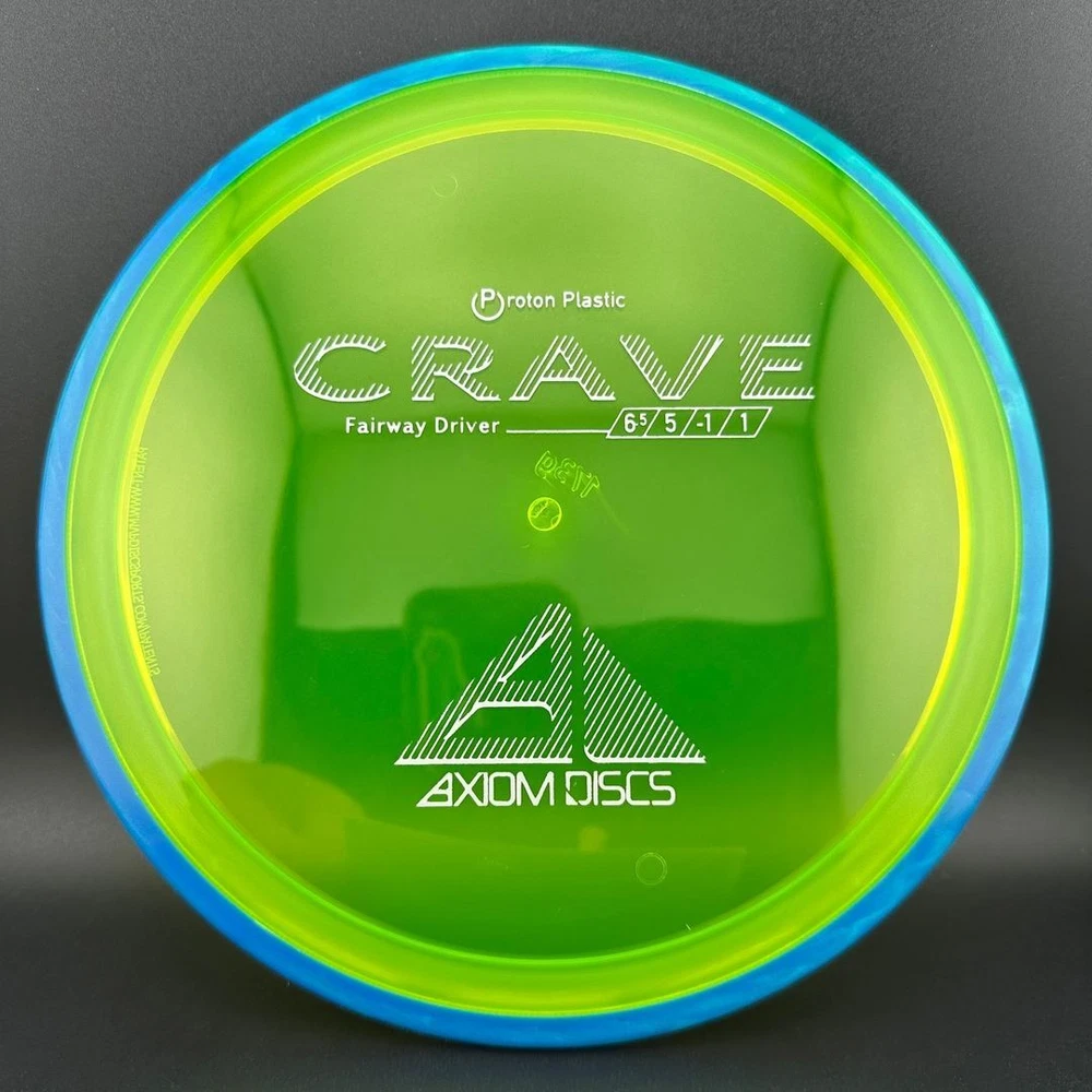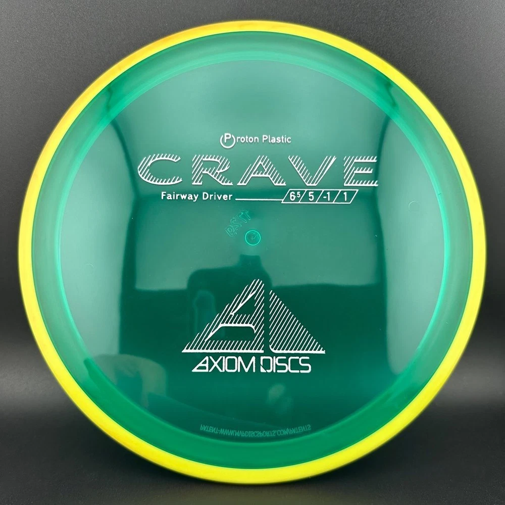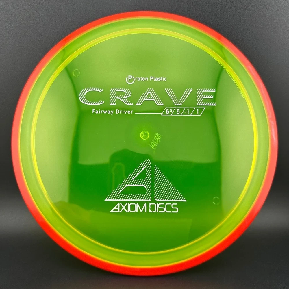 6.5/5/-1/1 The Crave is the first driver in the Axiom Line. This moderate speed fairway driver is described as a seasoned MVP Servo. The Crave is one of the straightest flying fairway drivers in the market. It totes a slower speed, but don't let it fool you, as it goes far. It provides a torque resistant, but straight flight suitable for backhands or forehands. Most MVP made discs are relatively flat, and the Crave is no exception. Proton is a beautiful and durable blend in the MVP line. Like all MVP discs, Proton has two seperate plastics; a transparent flight plate in vivid colors, and a black solid outer rim.