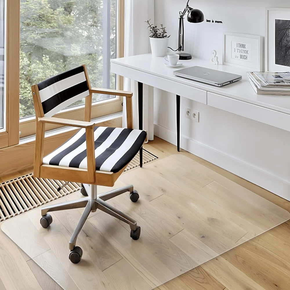 Azadx Office Chair Mat for Hard Floors 48 X 59, Clear PVC Hardwood Floor Mat, Durable Plastic Floor Protector for Home and Office use (48" X 59" Rectangle) Product Details Size: 48" X 59" Rectangle Brand: Azadx MPN: AZD-B-101 & AZD-B-102 UPC: 723247399750 EAN: 0723247399750 Material: Polyvinyl Chloride Brand: Azadx Size: 48" X 59" Rectangle Color: Clear Style: Modern Shape: Rectangular Product Dimensions: 48"L x 59"W x 0.07"Th Surface Recommendation: for hardwood floor Corner Style: Rounded Manufacturer: Azadx Material: Polyvinyl Chloride Brand: Azadx Size: 48" X 59" Rectangle Color: Clear Style: Modern Shape: Rectangular Product Dimensions: 48"L x 59"W x 0.07"Th Surface Recommendation: for hardwood floor Corner Style: Rounded Manufacturer: Azadx UPC: 723247399750 Number of Items: 1 Item Weight: 9.13 pounds Country of Origin: China Is Discontinued By Manufacturer: No Date First Available: July 2, 2017 Made of premium PVC, No off-gassing - Odorless, no BPA, phthalate or toxins. When it gets dirty easily wipe your plastic chair mat with a wet cloth,this mat can give your floor and furniture the best protection, when flooring gets damaged it could be very costly to replace Dull polish makes the scuffing less visible, the unique surface texture allows your office chair to move easily while carrying out daily tasks, but has enough grip to maintain controlled rolling so the chair doesn't skid around This chair mat can effectively block the surface of objects and reduce the scratches when your furniture is moving on the floor, Its made to be convenient for persons who constantly move around in their office chair. Superior PVC material makes it durable and reliable for long-lasting use, this office chair mat is specially designed to protect any hard flooring surface such as hardwood, tile, laminate, concrete, and vinyl floors with its scuff resistant material Clear design will complement any decor of your home or office, Spend most economical money buy this best mat, you will never regret for your choice when you got our mat.