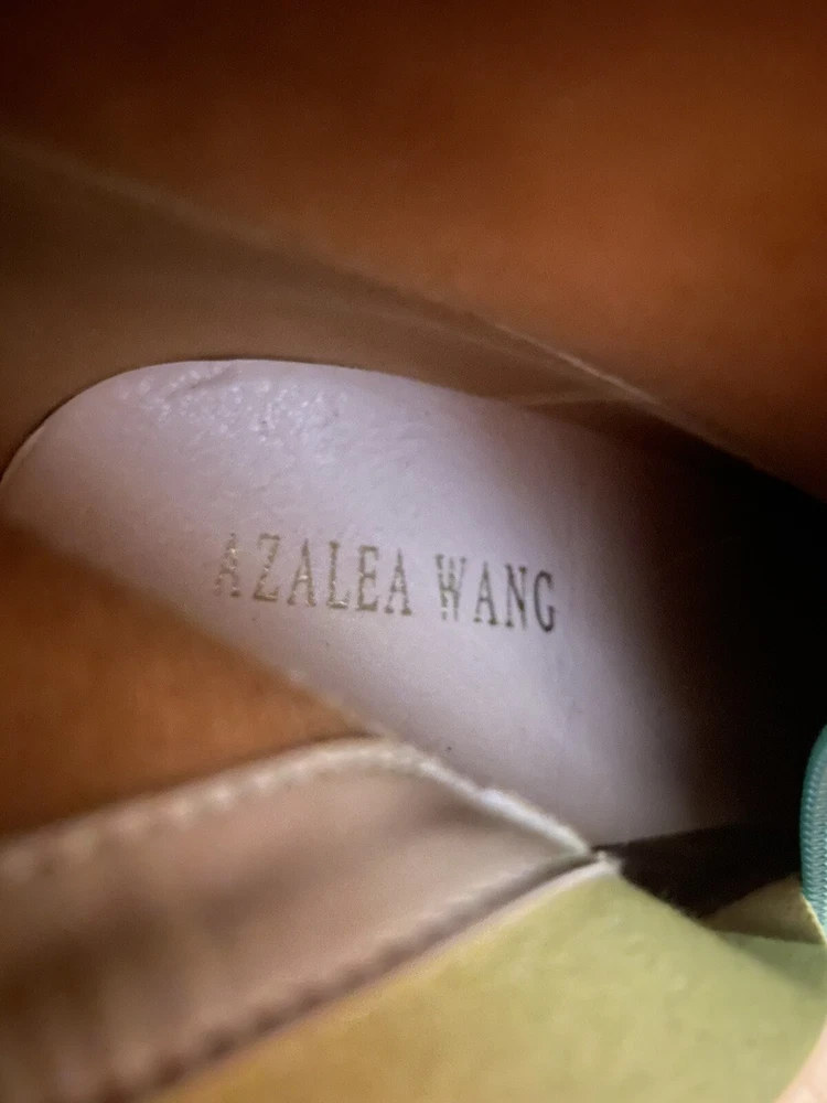 Elevate your shoe game with these stunning Azalea Wang Square Up Stiletto Booties in a beautiful green color. These boots are perfect for any fashion-forward woman who wants to make a statement with their footwear. The booties feature a sleek leather upper and a stylish stiletto heel that adds an extra boost of confidence to any outfit. These boots are a size 8.5 and are perfect for any occasion, whether it's a night out on the town or a casual day at the office. The booties are made with high-quality materials and are built to last, so you can enjoy them for years to come. Don't miss out on the chance to add these amazing Azalea Wang Square Up Stiletto Booties to your wardrobe.