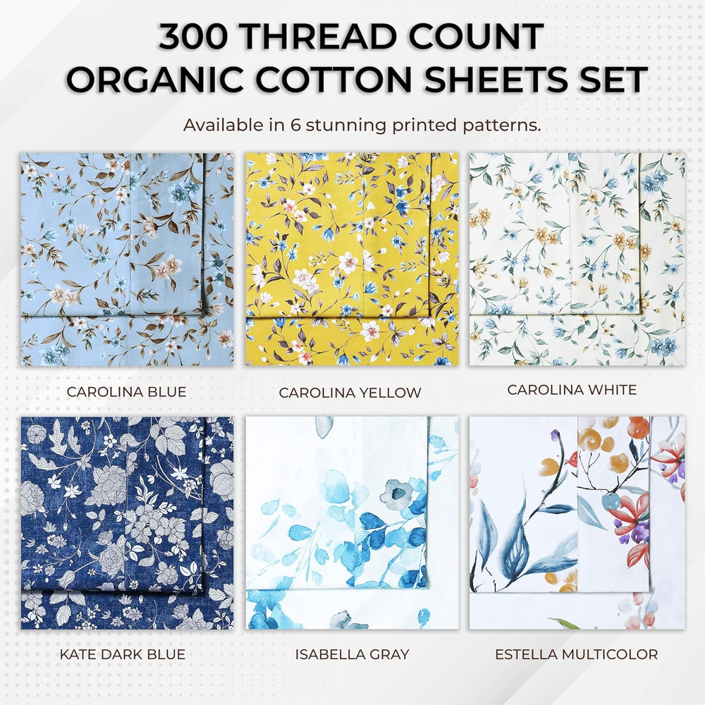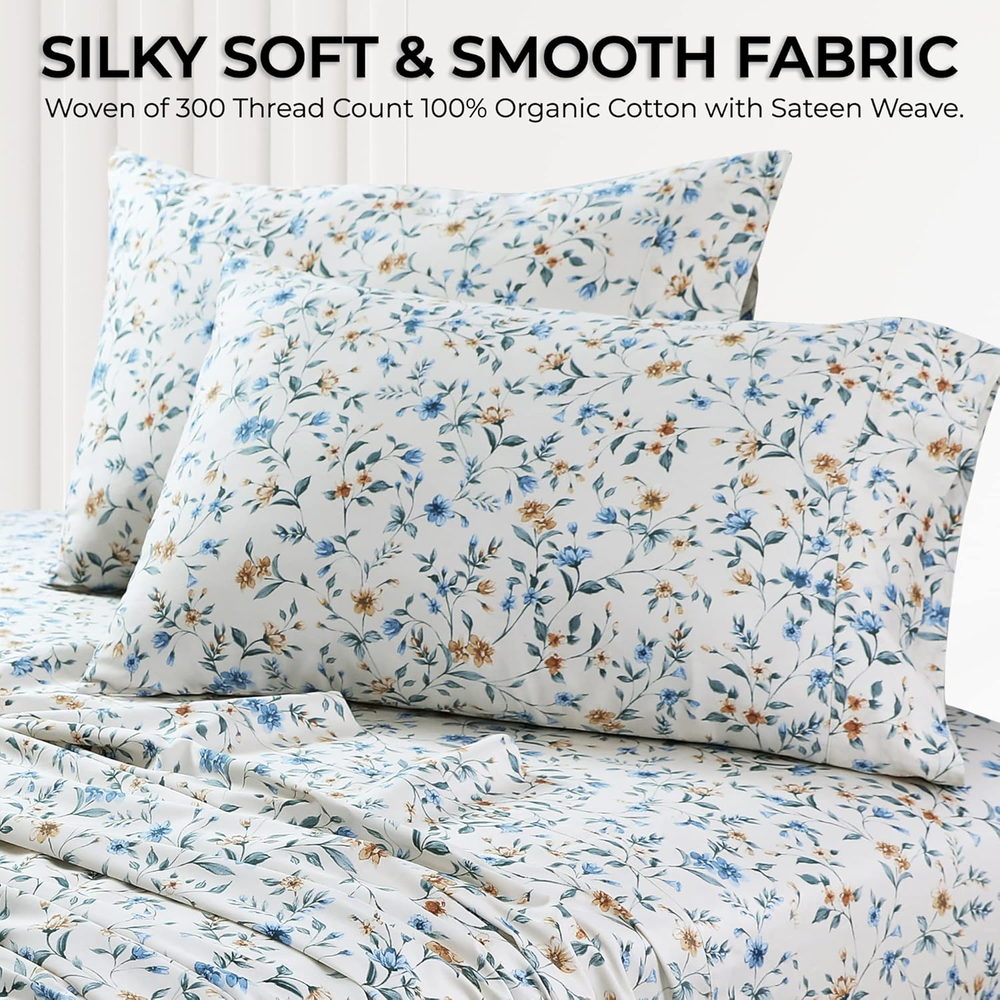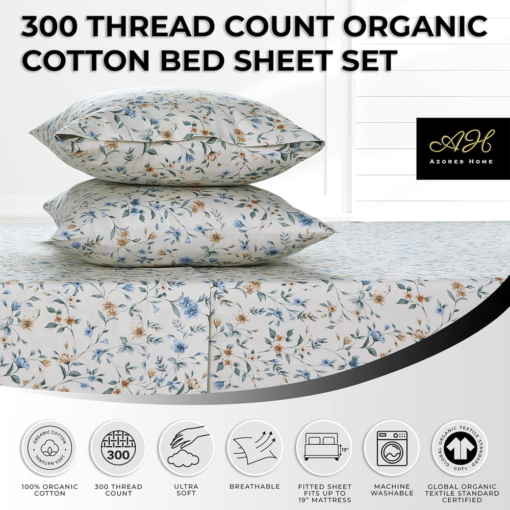 Azores 300TC Organic Cotton Deep Pocket Sheet Set for 19-Inch Mattresses