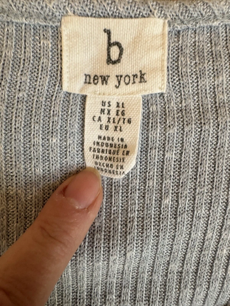 B New York Sweater Women’s Size XL Light Blue Long Sleeve Longer In Back Light blue lightweight sweater in excellent condition with a scoop neck and nice detailing in the back. The sweater has been washed so it will arrive at your home freshen clean from a pet free smoke-free home. Ships from the Midwest.